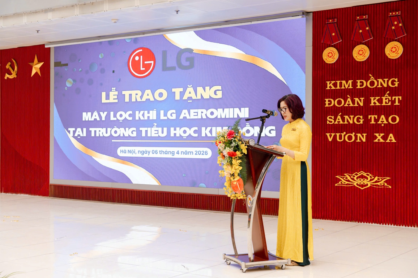 Phát biểu tại buổi lễ, đại diện Công ty LG Electronics Việt Nam chia sẻ mong muốn góp phần cải thiện chất lượng không khí trong môi trường học đường, qua đó bảo vệ sức khỏe cho các em học sinh – thế hệ tương lai của đất nước. Món quà ý nghĩa này không chỉ thể hiện trách nhiệm xã hội của doanh nghiệp mà còn là sự đồng hành thiết thực cùng nhà trường trong hành trình xây dựng môi trường giáo dục an toàn, thân thiện và hiện đại.