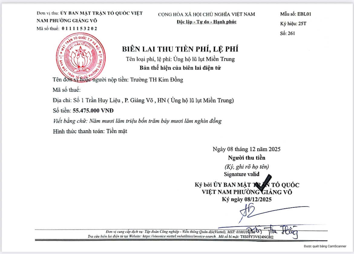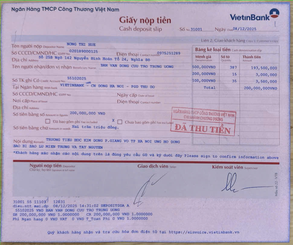 Toàn bộ số tiền ủng hộ đã được chuyển tới các Quỹ cứu trợ của Ủy ban MTTQ.