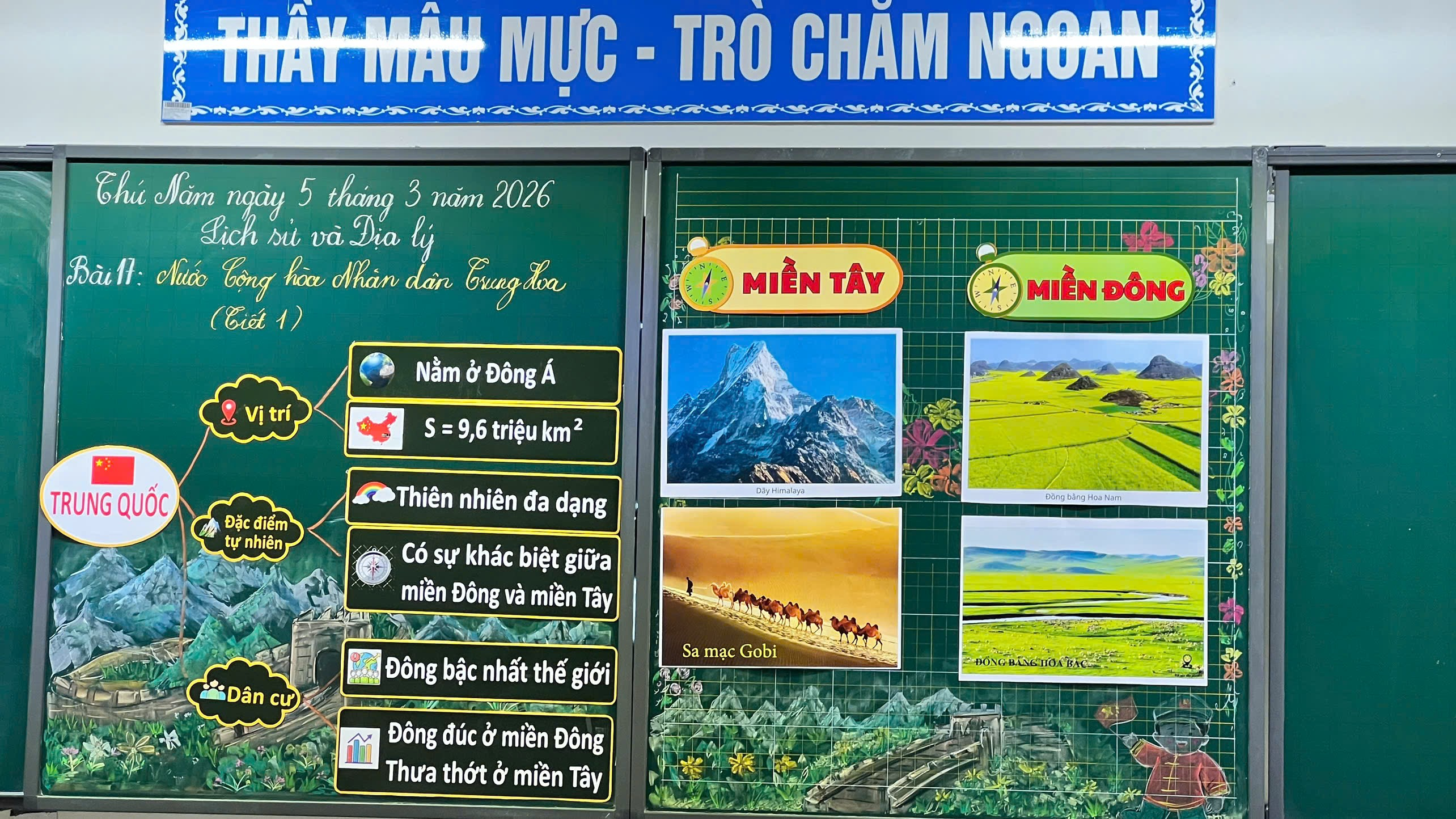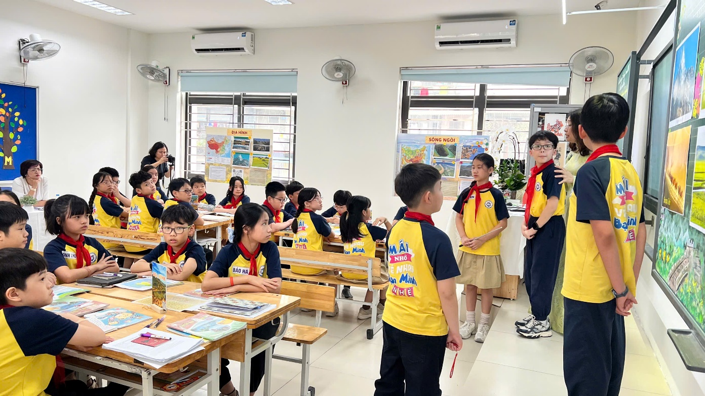 Điểm nổi bật của tiết dạy là việc vận dụng linh hoạt các phương pháp dạy học hiện đại, đặc biệt là phương pháp triển lãm và phương pháp chuyên gia. Lớp học được tổ chức như một không gian học tập mở, nơi học sinh được tham quan các “khu vực trưng bày”, chủ động quan sát, trao đổi và tiếp nhận kiến thức qua hình ảnh, bản đồ và tư liệu trực quan. Không khí học tập vì thế trở nên tự nhiên, tích cực, học sinh được “học bằng trải nghiệm” thay vì tiếp thu thụ động.