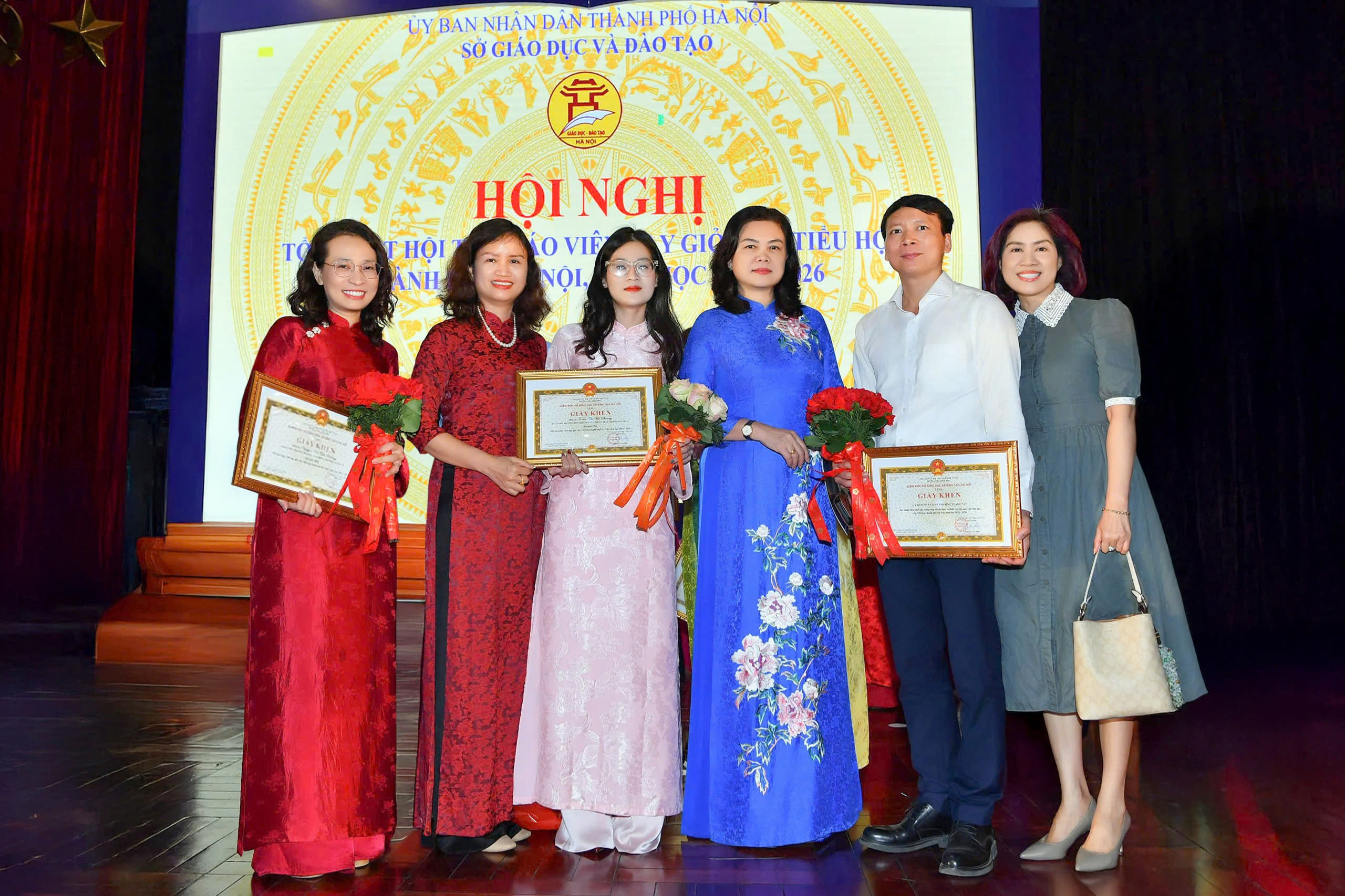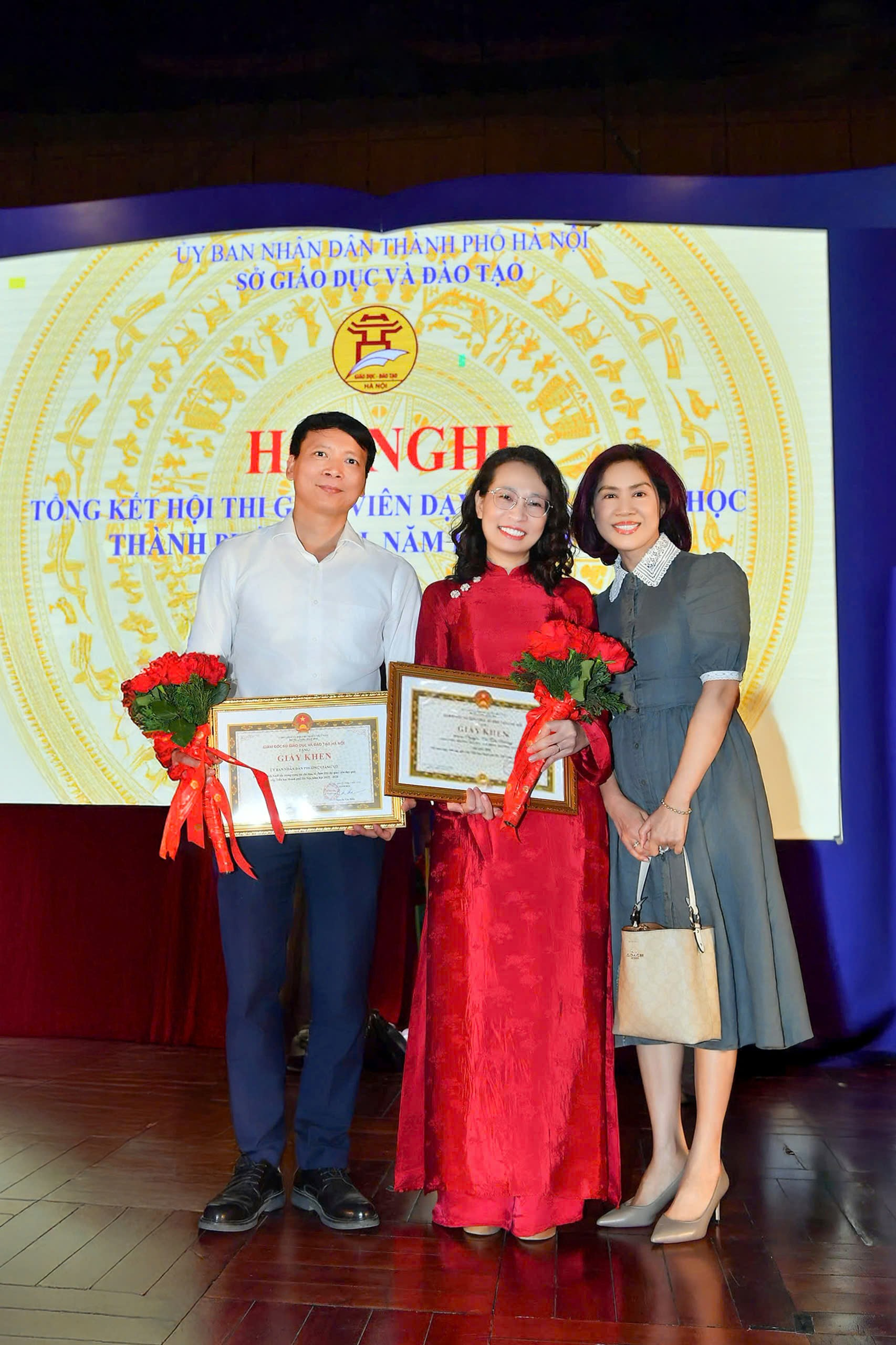 Cô giáo Nguyễn Thị Thu Hương, các giáo viên dự thi cùng Bà Trần Lưu Hoa - Phó Giám đốc Sở GD&ĐT Hà Nội