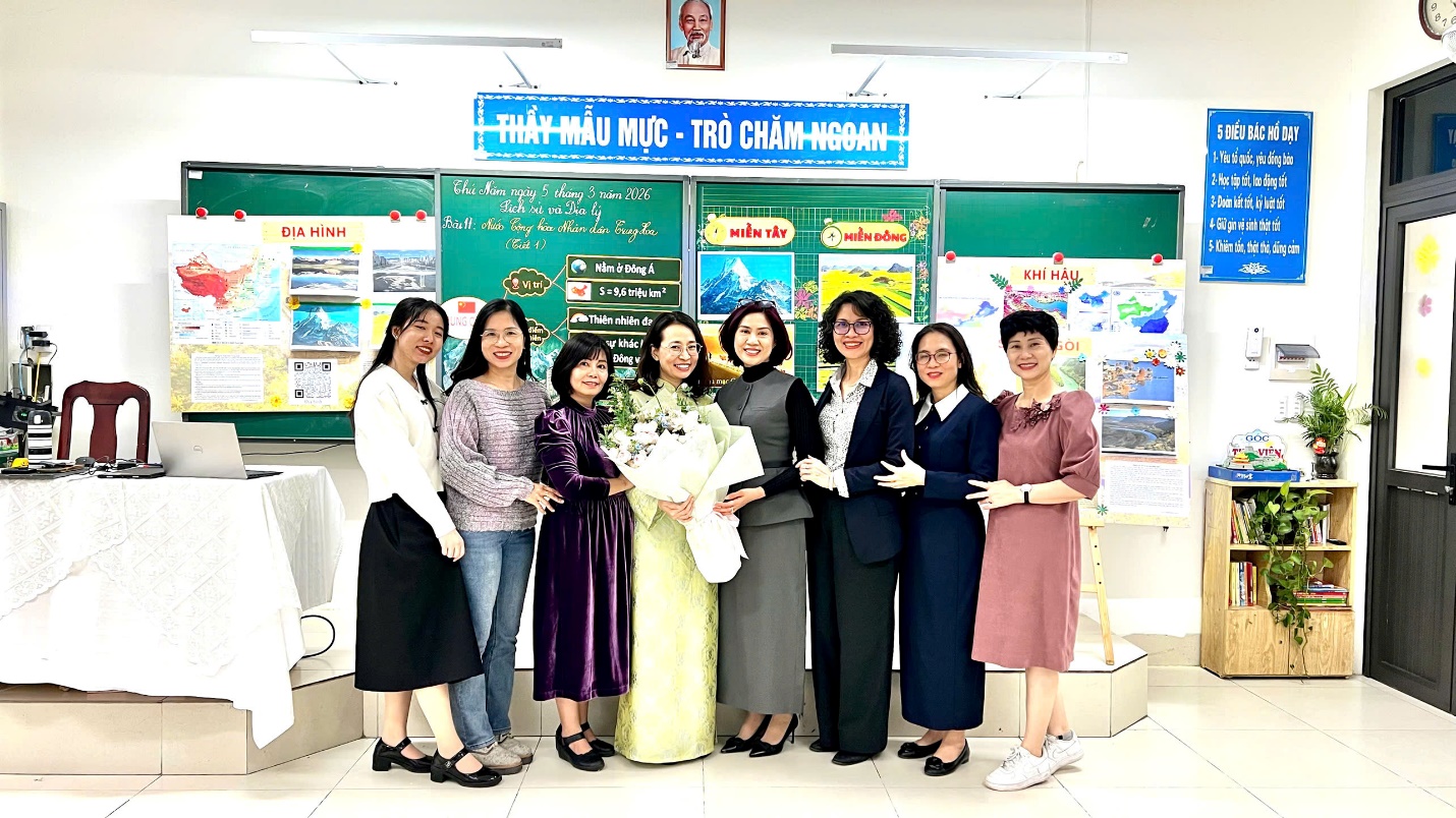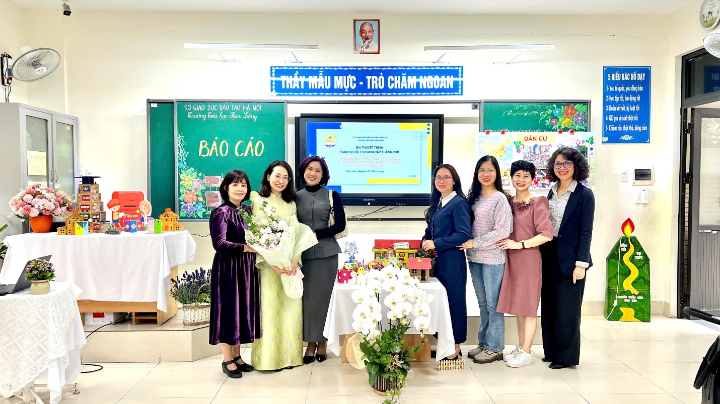 Đằng sau thành công ấy là sự quan tâm, chỉ đạo sát sao của Ban Giám hiệu nhà trường; sự đồng hành, chia sẻ kinh nghiệm của tập thể giáo viên tổ 5; cùng tinh thần hỗ trợ đầy trách nhiệm từ các đồng nghiệp trong toàn trường. Sự phối hợp đồng bộ đã tạo nên nền tảng vững chắc, góp phần giúp cô giáo Nguyễn Thị Thu Hương tự tin thể hiện tốt trong hội thi.