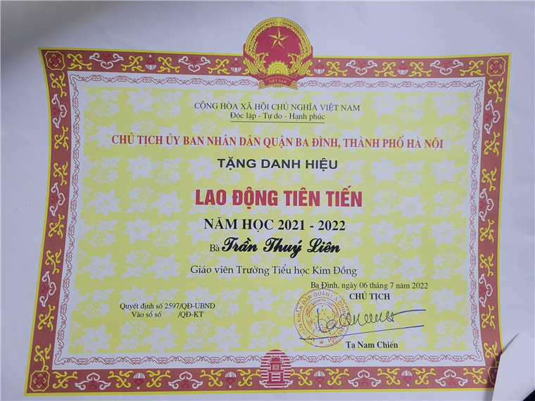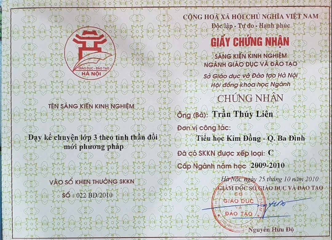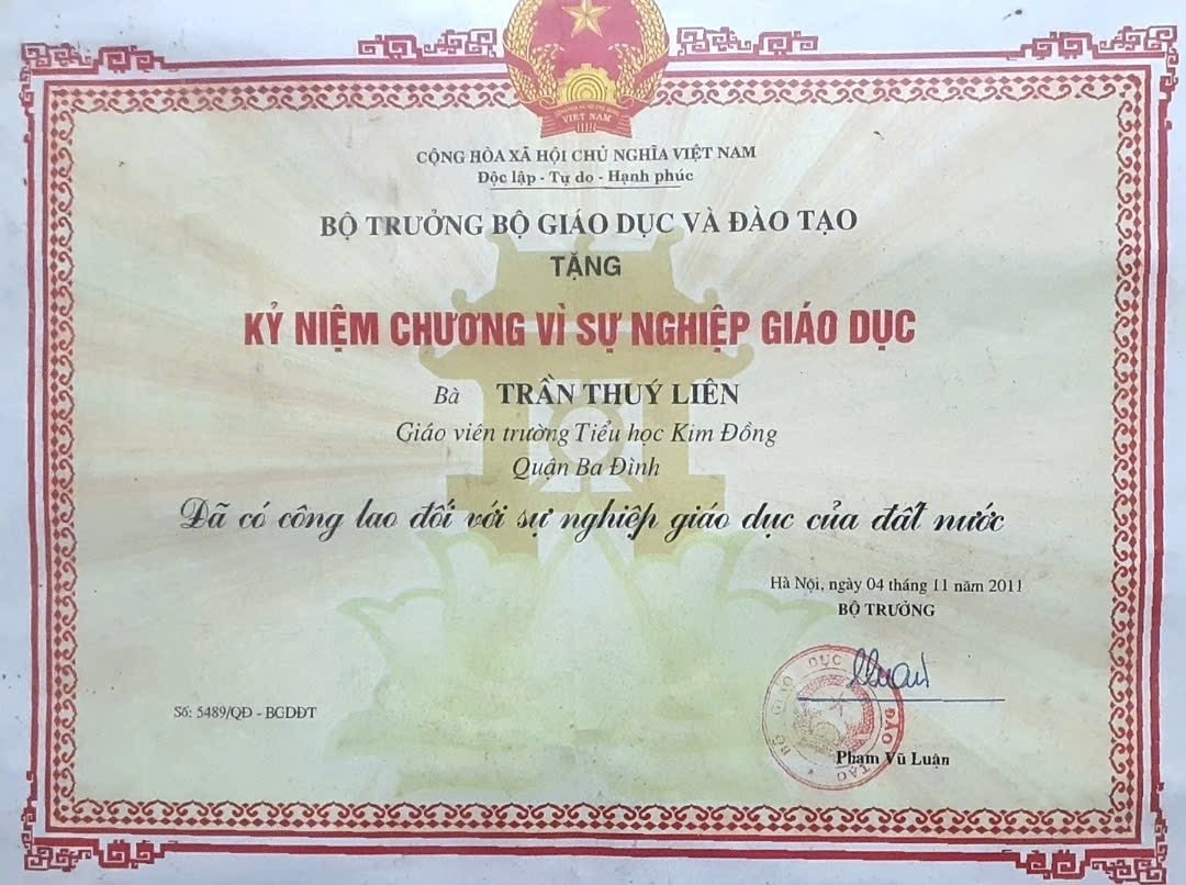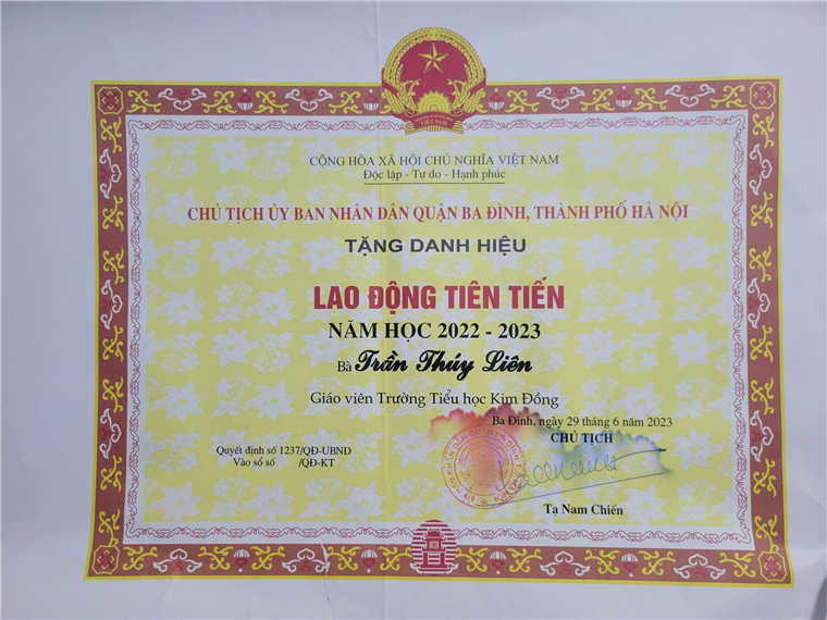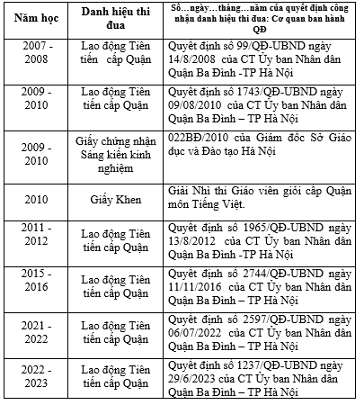 Bằng năng lực và chuyên môn xuất sắc, cô giáo Trần Thuý Liên cũng được nhận những danh hiệu xứng đáng của riêng mình: