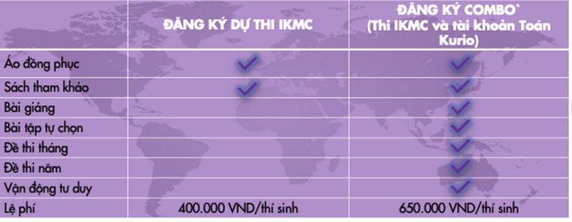 PHHS đăng kí cho con tham gia thử sức kì thi IKMC 2023 thì liên hệ với GVCN để nhận link điền thông tin và đóng lệ phí thi ( 400.000 đ hoặc gói Combo 650.000đ)