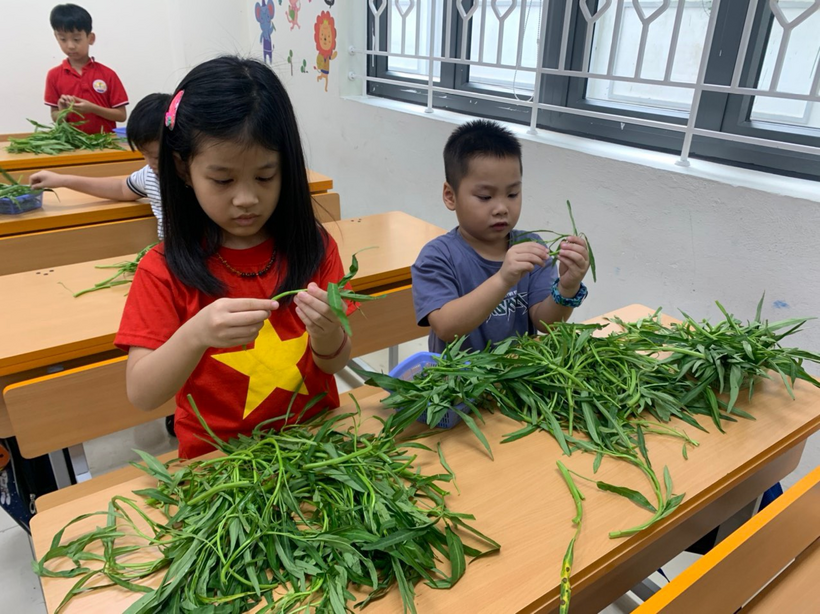 Nhặt rau, trồng nấm là công việc quen thuộc hàng ngày mà các bé thường thấy nhưng ít khi được trải nghiệm thực tế. Qua hoạt động này, bé sẽ rèn cơ tay vận động ngón tay, khả năng quan sát và phân biệt phần rau ngon và phần rau bỏ đi, kiến thức về thực phẩm ăn hàng ngày, lòng kiên trì khi làm việc.