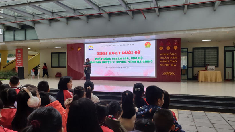 Rồi khi Quận Ba đình có phát động chương trình từ thiện “Xuân Yêu Thương”, quyên góp, ủng hộ giúp đỡ những hộ dân khó khăn tại huyện Vị Xuyên, tỉnh Hà giang, sửa nhà tình nghĩa, thêm trang thiết bị học tập cho các bạn nhỏ khó khăn, cô chủ nhiệm đã động viên chúng em tích cực tham gia hoạt động này. Khi được nhìn thấy những hình ảnh ở nơi các bạn nhỏ Vị Xuyên sinh sống còn nhiều thiếu thốn và khó khăn, chúng em thấy việc làm của mình thật ý nghĩa. Mỗi bạn một chút tùy theo hoàn cảnh gia đình; chúng em đã cùng toàn trường gửi yêu thương đến các gia đình còn khó khăn; mong các bạn nhỏ ở huyện Vị Xuyên, Tỉnh Hà giang có một mùa Xuân ấm áp hơn. Qua những hoạt động thiện nguyện nhà trường phát động, chúng em hiểu hơn ý nghĩa của việc yêu thương, chia sẻ với cộng đồng.