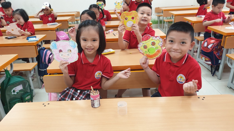 Tết Trung thu là ngày lễ để trẻ em được tung tăng vui chơi, gần gũi nhau, cùng nhau phá cỗ rước đèn, tận hưởng ngày lễ dành riêng cho mình. Cùng hòa chung không khí ấy, các con lớp 1A1 Trường Tiểu học Kim đồng cũng có những trải nghiệm rất vui vẻ trong dịp Trung thu này. Hôm nay, bạn nào cũng háo hức đi học sớm hơn, sau những tiết học hăng say trên lớp, các con được cùng nhau làm mặt nạ, được bày biện mâm cỗ Trung thu, các bạn cùng múa lân, rồi cùng nhau phá cỗ….bạn nào cũng vui vẻ và háo hức, tiếng cười ròn tan vang khắp dãy hành lang!