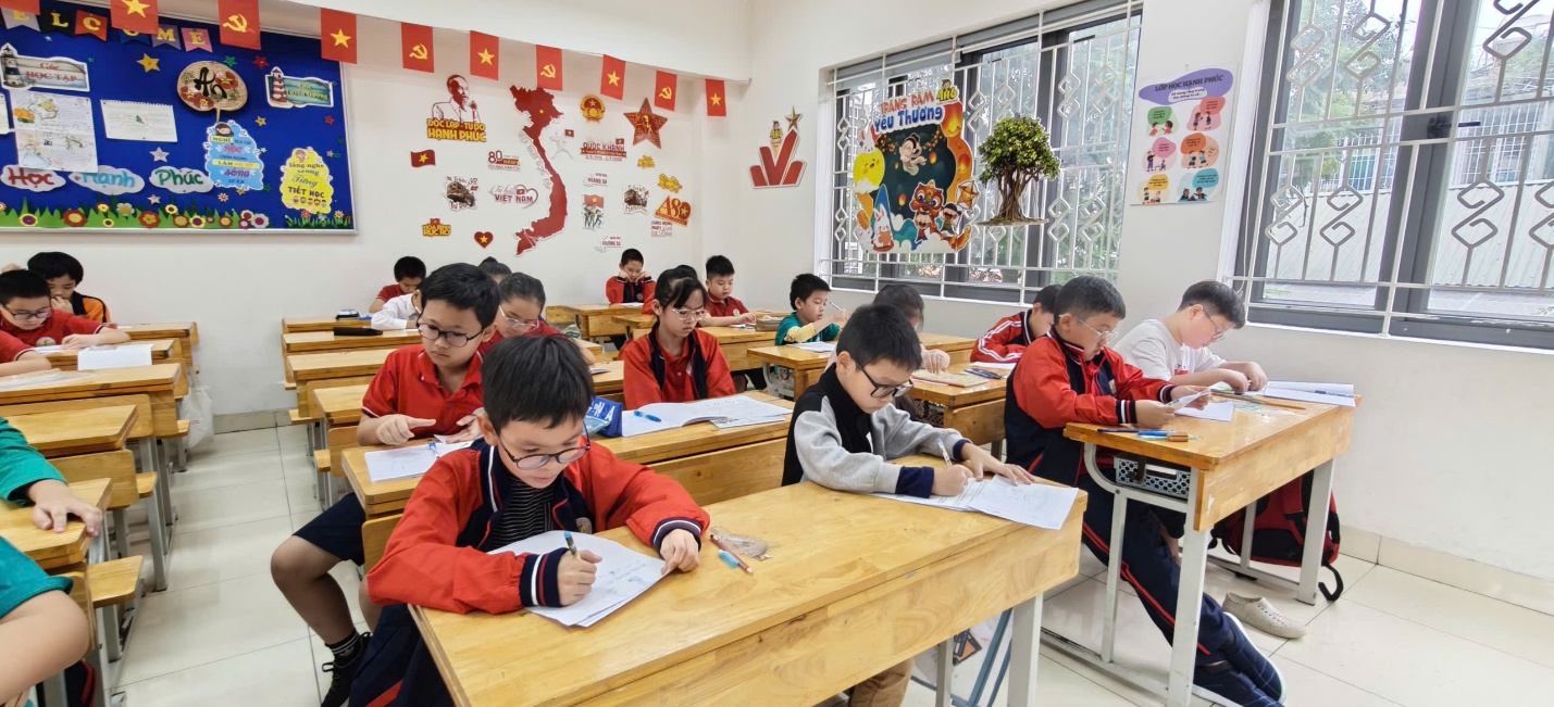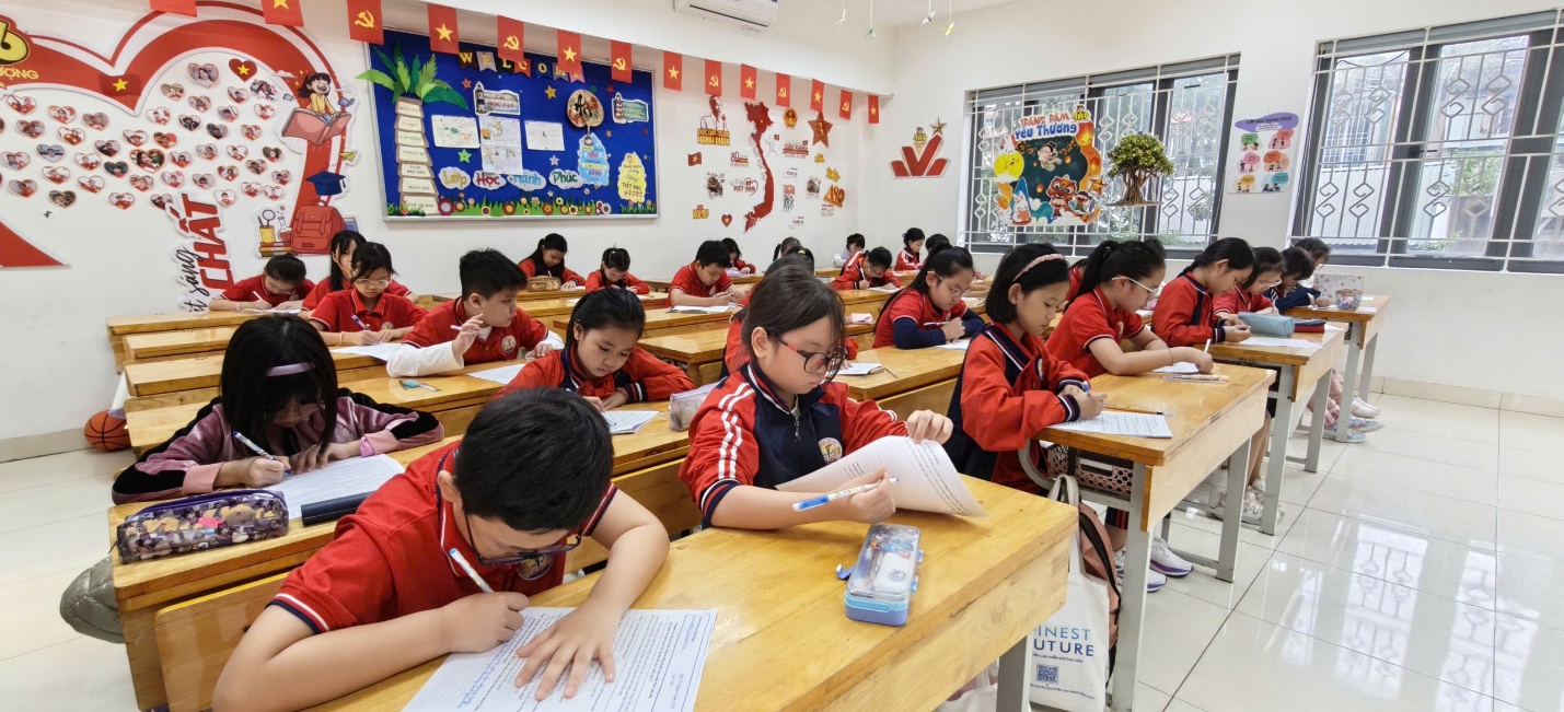 Các phòng thi được bố trí tại các lớp 3A5, 3A6, 4A5, 4A6, 4A7 và 4A8. Đề thi được xây dựng theo chuẩn kiến thức – kỹ năng của chương trình hiện hành, có độ phân hóa cao nhằm đánh giá năng lực thực chất và phát hiện học sinh có tư duy nổi bật, khả năng sáng tạo, diễn đạt và lập luận logic tốt.