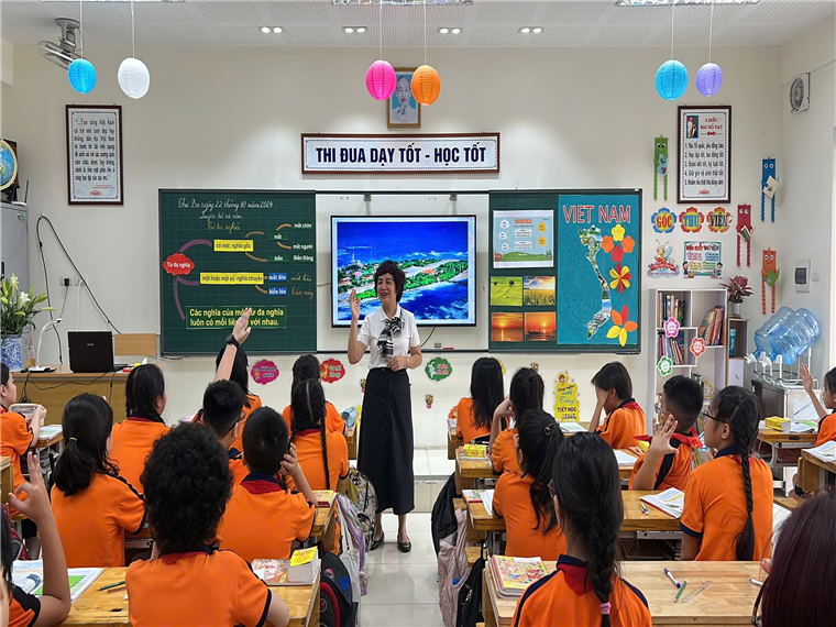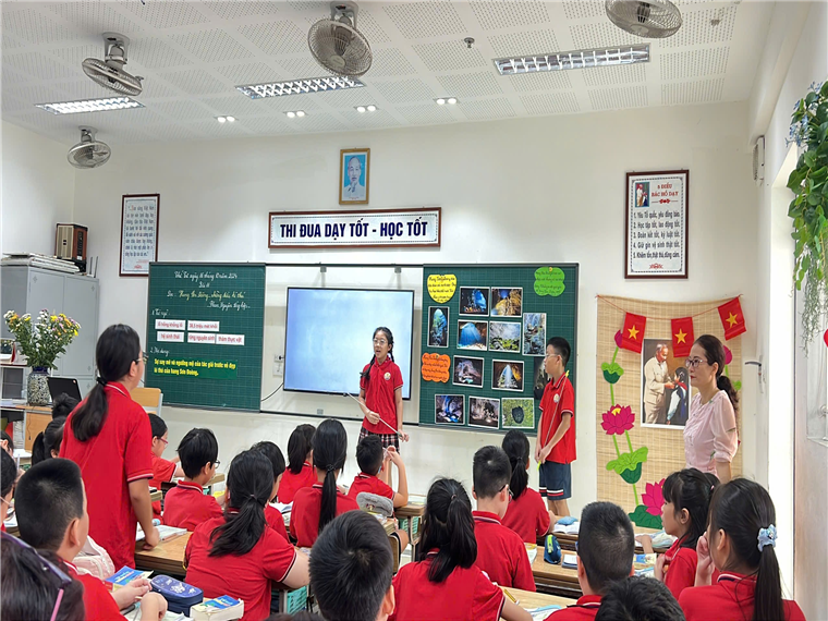 Trong các tiết học, các thầy cô đã khéo léo tạo ra các tình huống học tập sinh động, giúp học sinh chủ động tìm tòi và khám phá kiến thức thay vì chỉ tiếp thu một chiều. Các bài học không còn nhàm chán, khô khan mà trở nên thú vị và dễ tiếp cận hơn đối với học sinh. Thông qua việc sử dụng các công cụ học tập trực tuyến, phần mềm tương tác, các con học sinh được tiếp cận với các nguồn tài liệu phong phú và đa dạng, đồng thời cũng phát triển kỹ năng công nghệ thông tin một cách tự nhiên. Điều đặc biệt và gây ấn tượng nhất có lẽ chính là khả năng tổ chức các hoạt động nhóm, thảo luận lớp và các hình thức học tập linh hoạt, giúp học sinh phát huy tối đa khả năng sáng tạo và sự tự tin trong giao tiếp. Sự tương tác giữa thầy và trò, cũng như giữa các học sinh với nhau đã tạo nên một môi trường học tập năng động, sáng tạo và đầy tính xây dựng. Trong mỗi tiết học, người dự có thể thấy được lòng yêu nghề và sự nhiệt huyết của các thầy cô qua cách truyền cảm hứng, khơi gợi niềm đam mê học tập cho các con học sinh.