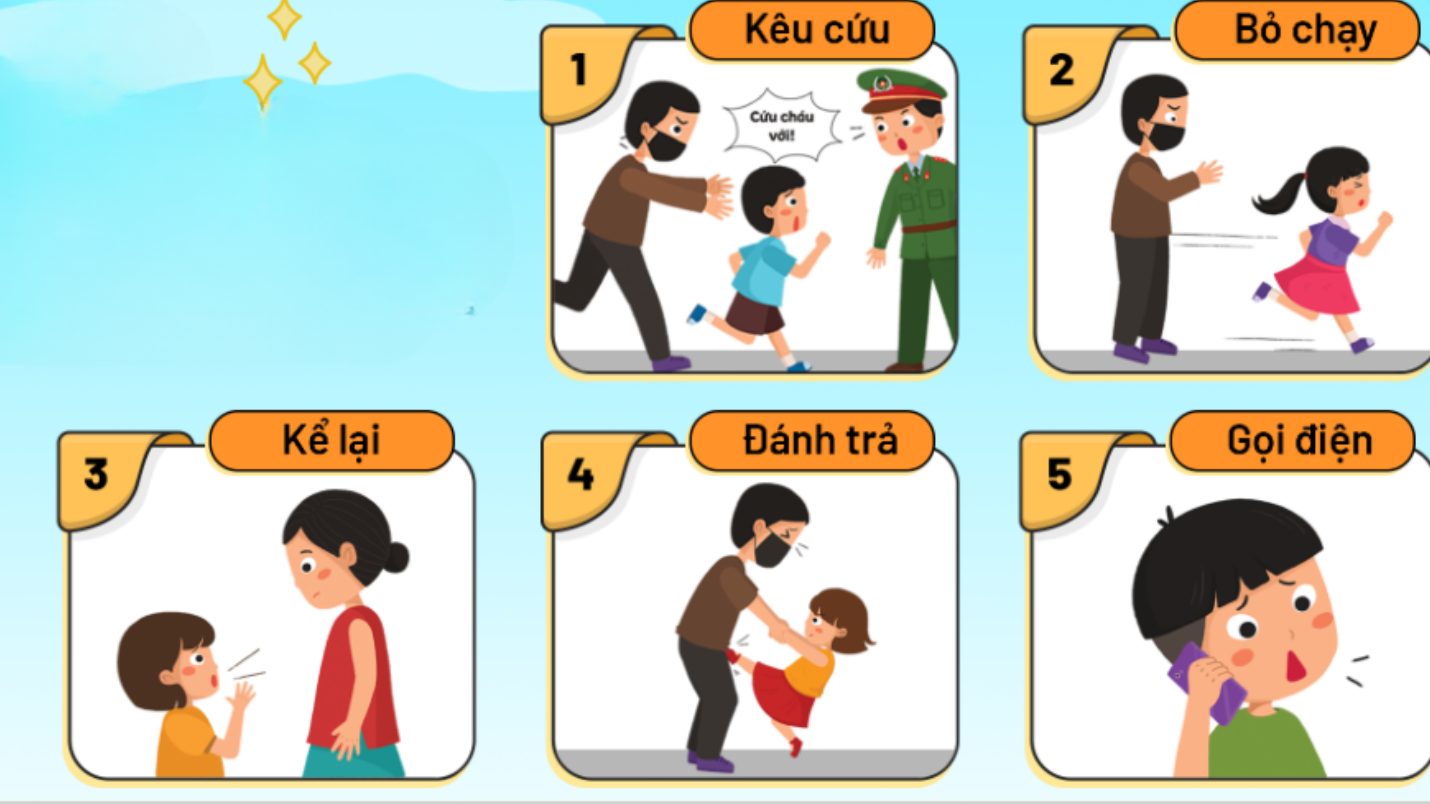 🏃♂️ Chạy ngay đến chỗ đông người hoặc tìm sự giúp đỡ từ người lớn có trách nhiệm như chú công an, bảo vệ,…