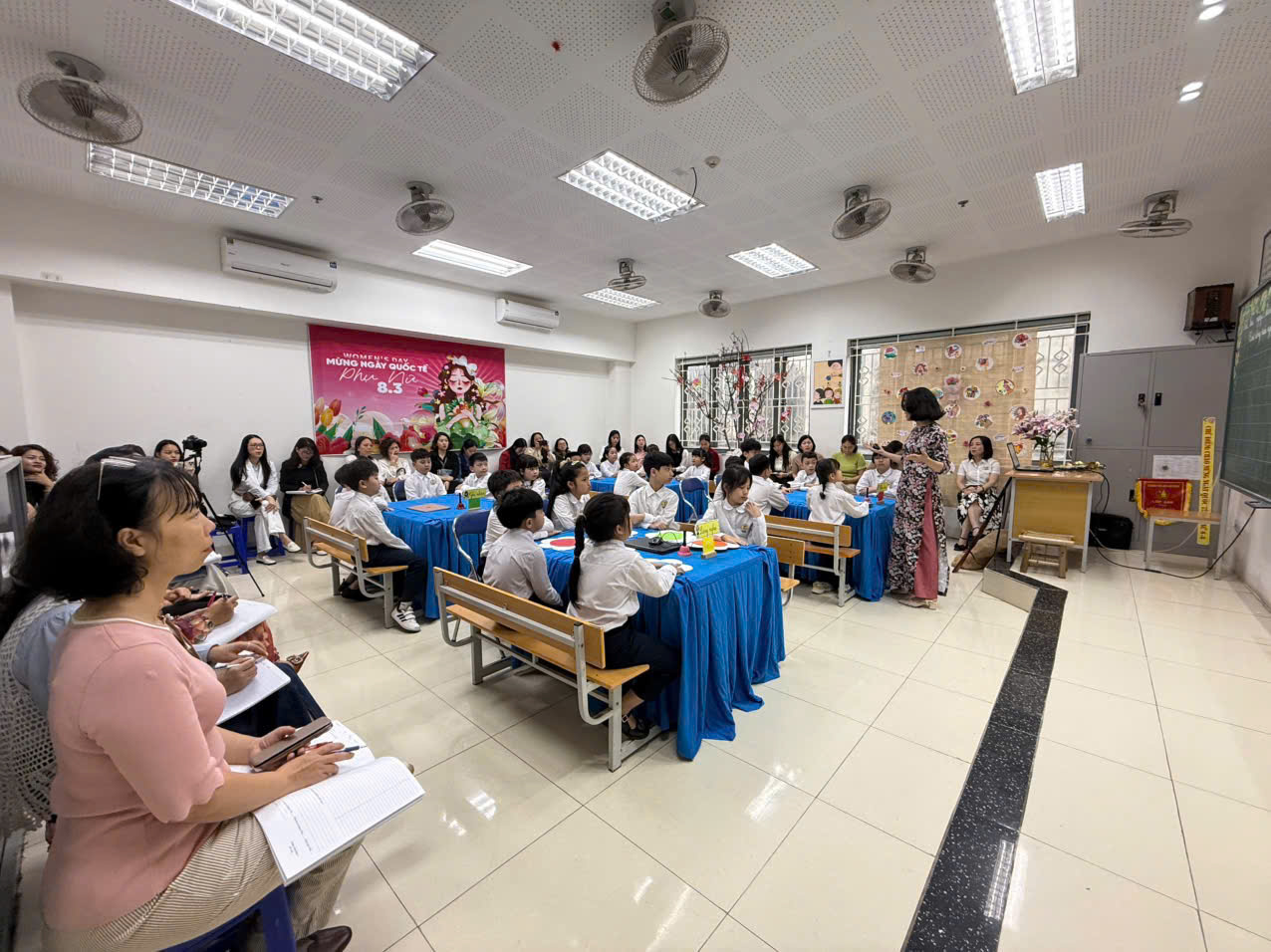 Hòa chung không khí hân hoan hướng tới ngày Quốc tế Phụ nữ 8/3, học sinh lớp 3A6 đã tham gia một tiết học hoạt động trải nghiệm đặc sắc và giàu cảm xúc do cô giáo Đặng Thu Trang hướng dẫn, để lại nhiều ấn tượng tốt đẹp trong lòng học sinh cũng như giáo viên đến dự. Đây không chỉ là một giờ học sinh động mà còn là dịp để các em bày tỏ tình cảm, lòng biết ơn và sự trân trọng đối với bà, mẹ, cô giáo và những người phụ nữ thân yêu xung quanh mình.