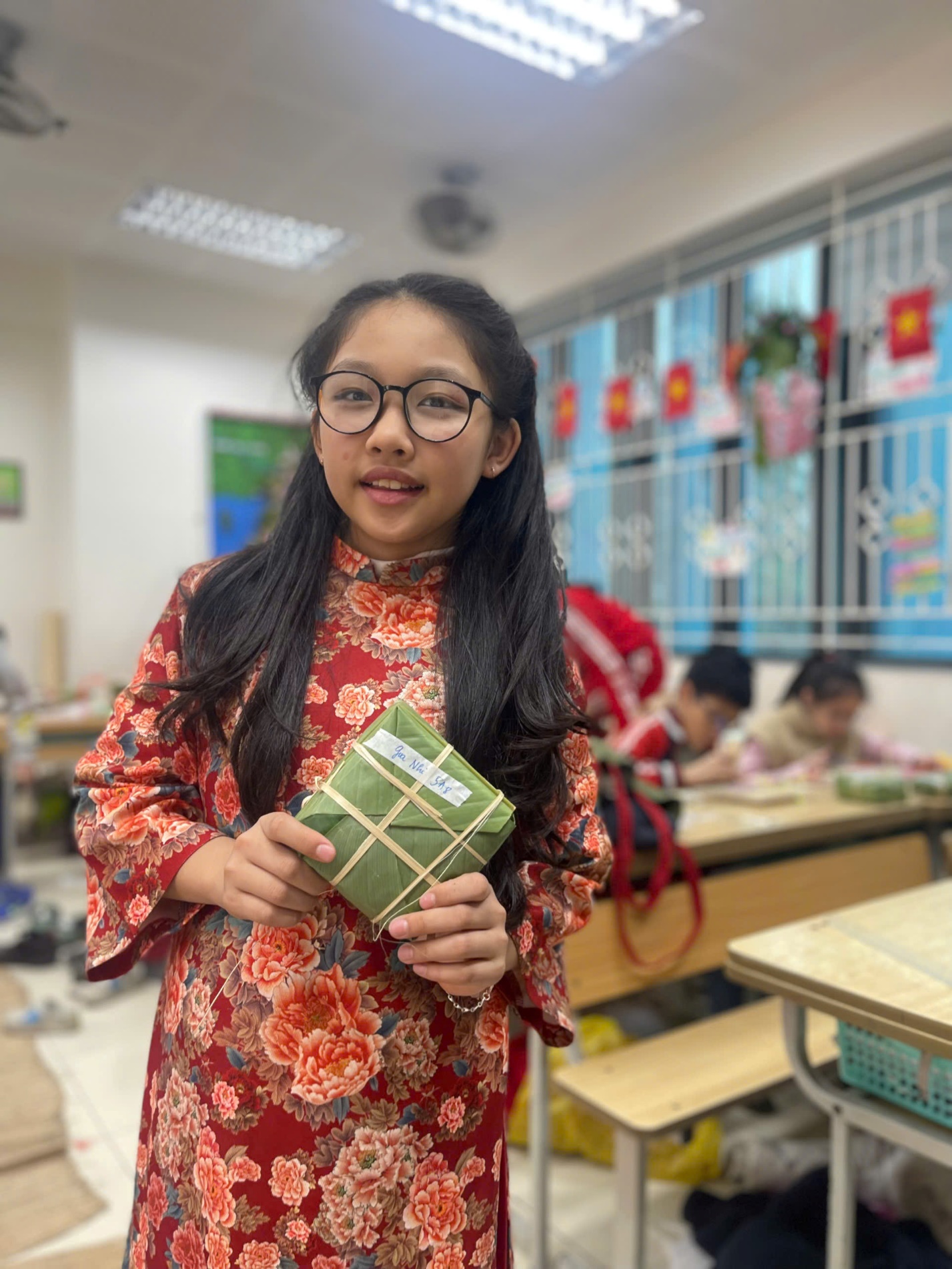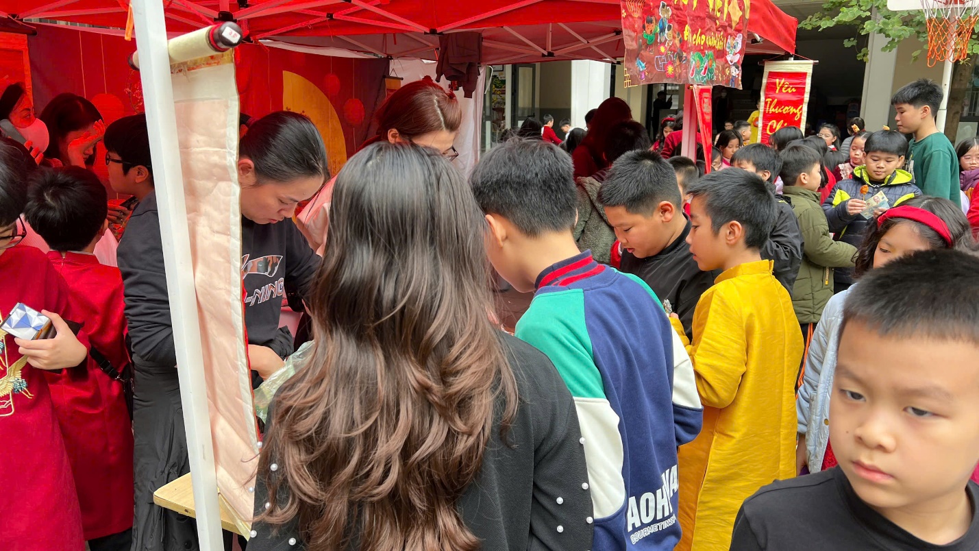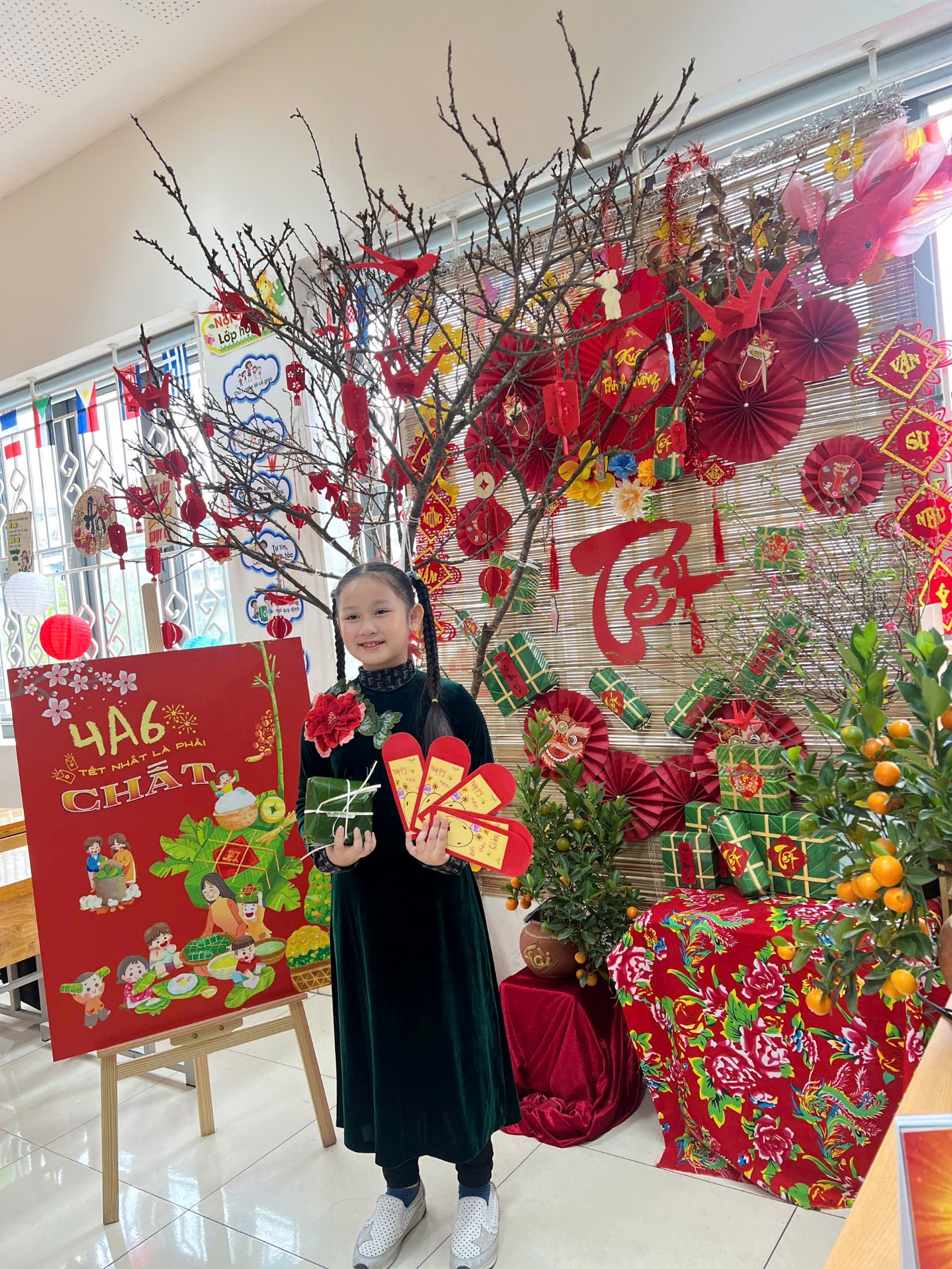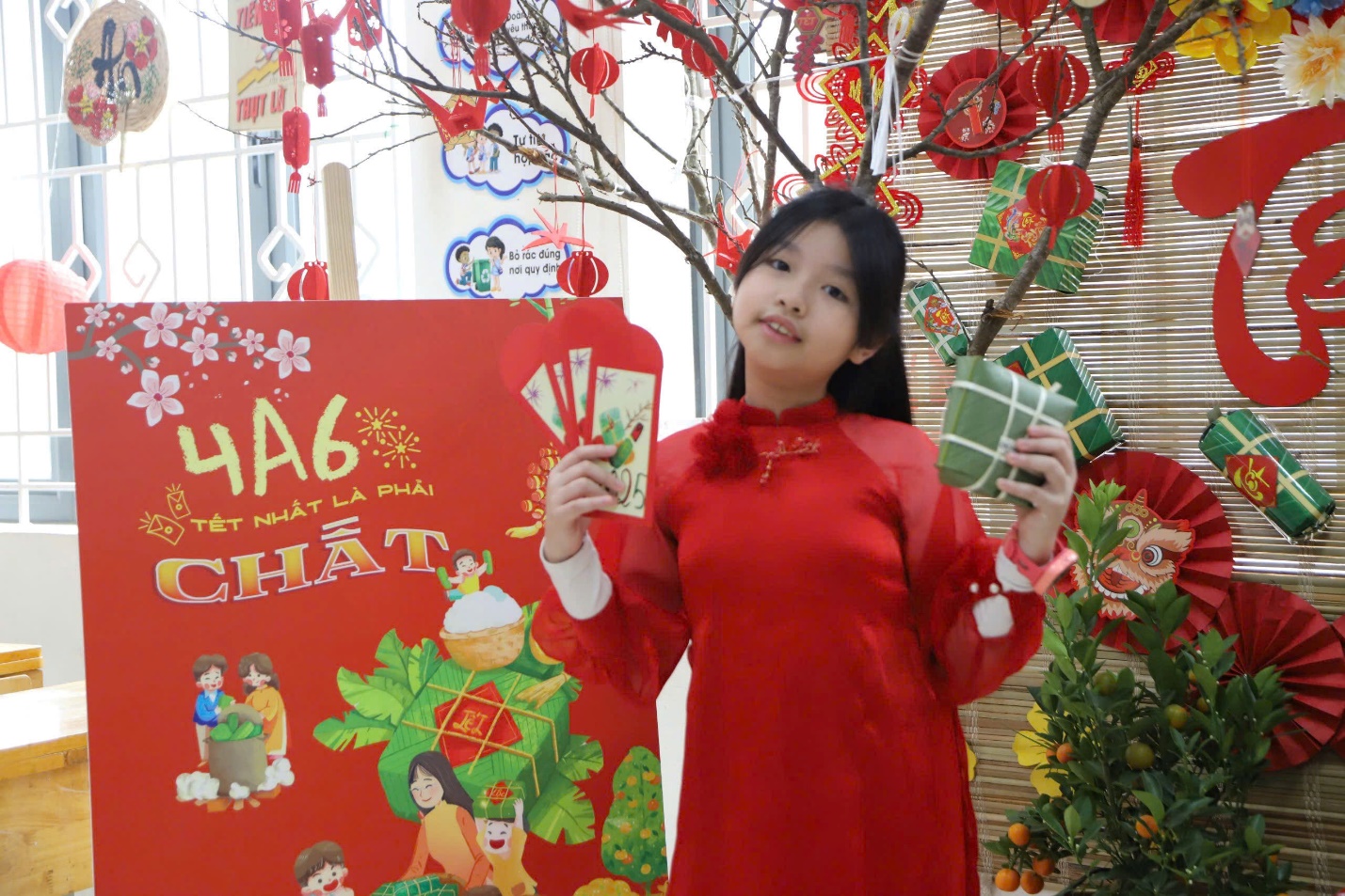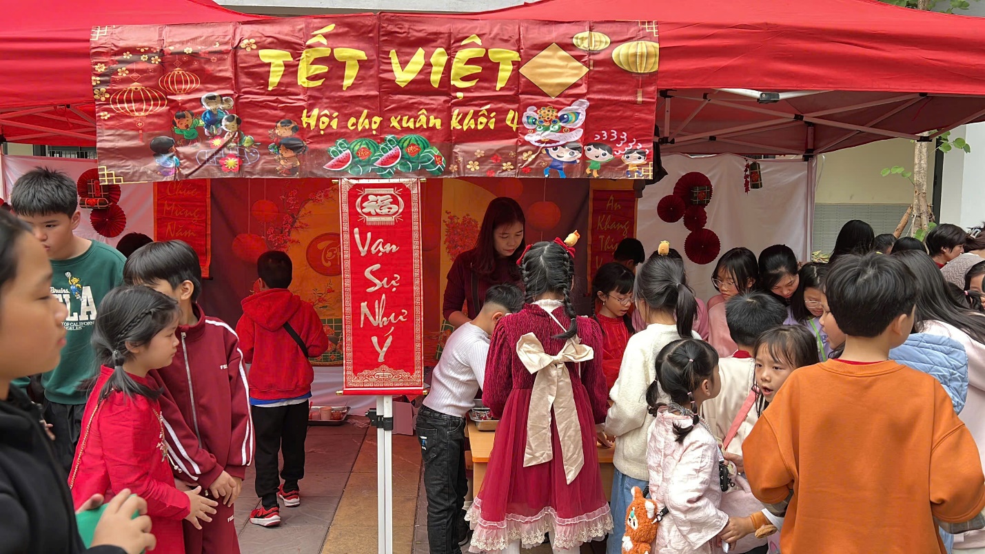 Đối với các em học sinh, hội chợ xuân là một dịp đặc biệt để vui chơi và thể hiện tài năng. Em Minh Anh - học sinh lớp 5A8 chia sẻ: “Con rất vui khi được tham gia hội chợ xuân, con đã làm chiếc bánh chưng nhỏ. Chúng con còn chơi, trải nghiệm mua bán hàng hóa tự tay chuẩn bị. Đây là một ngày tuyệt vời!"