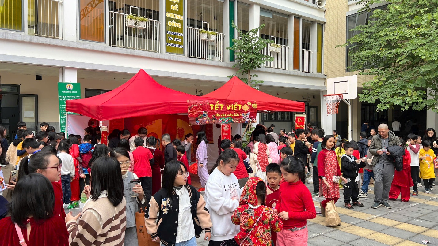 Sau khi kết thúc Lễ hội bánh chưng, Hội chợ Xuân diễn ra vô cùng nhộn nhịp và sôi động. Tại hội chợ, các em học sinh được tham gia vào nhiều hoạt động thú vị. Những gian hàng bày bán những món đồ xinh xắn như dây chuyền từ hạt cườm, tranh ảnh vẽ do chính tay các em làm. Các sản phẩm này không chỉ thể hiện tài năng sáng tạo mà còn mang đậm dấu ấn mùa xuân.