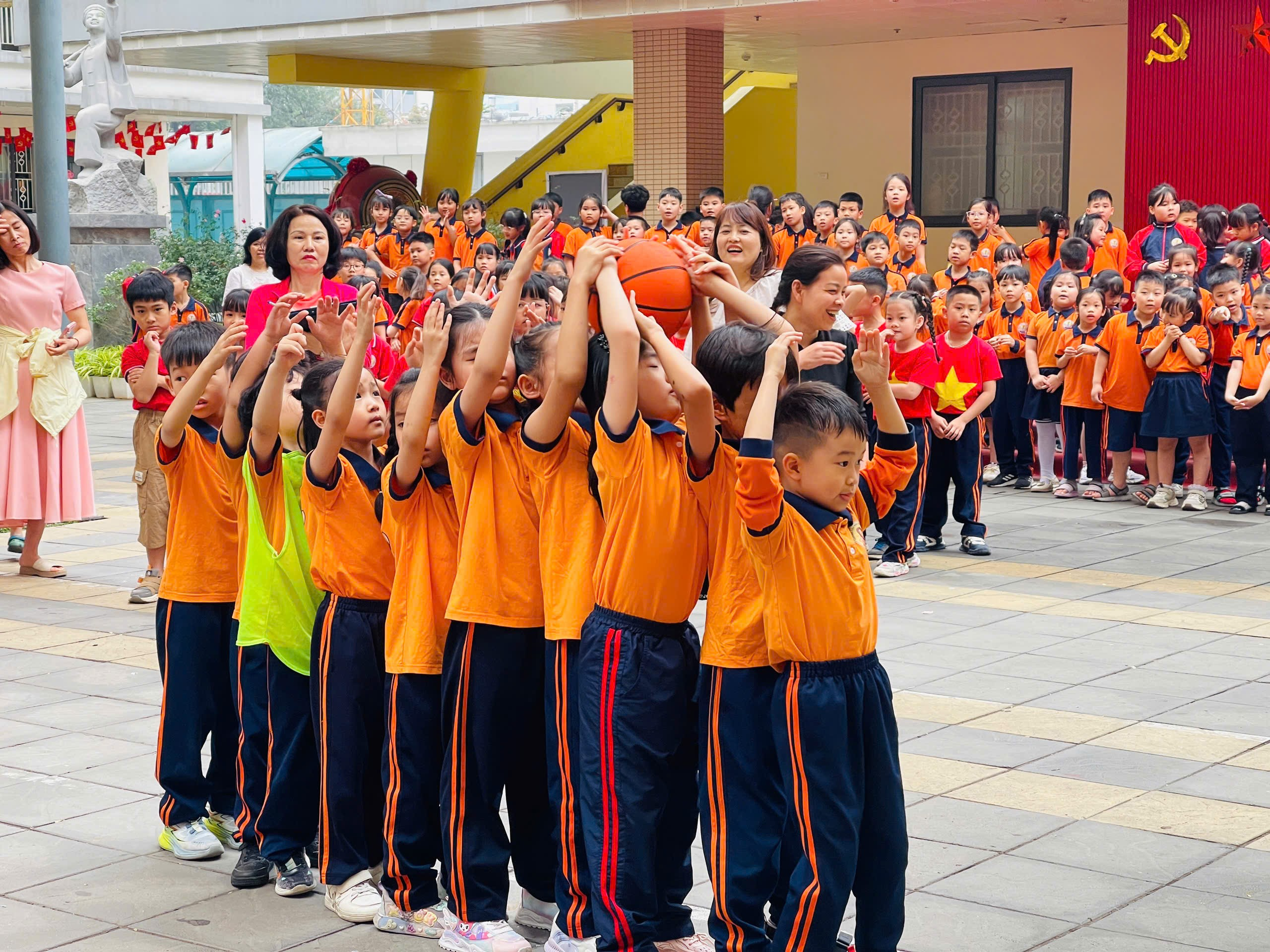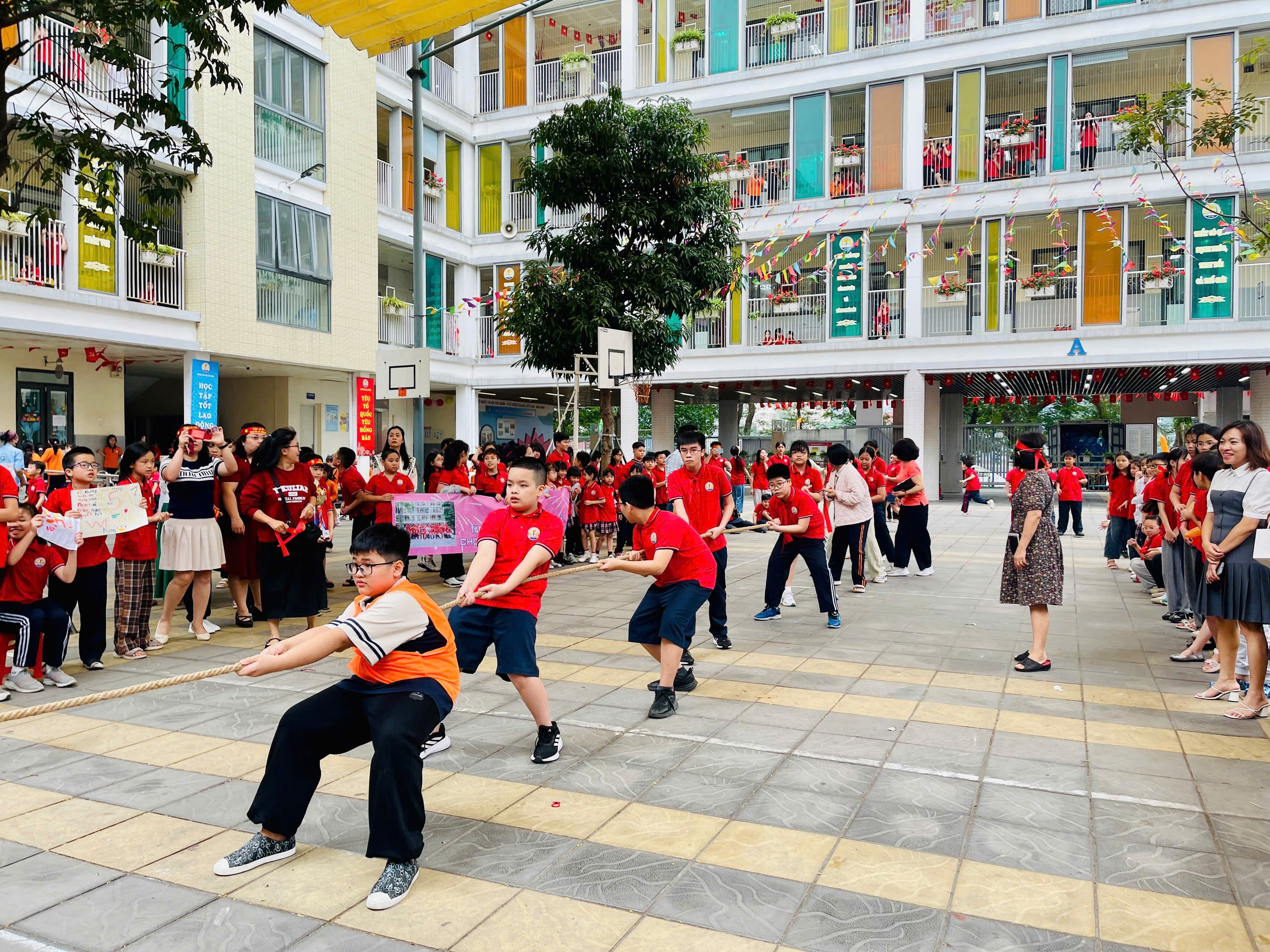 Ngay sau phần lễ, Ngày hội “Thiếu nhi vui khỏe – Tiến bước lên Đoàn” được tổ chức sôi nổi với nhiều hoạt động hấp dẫn. Các tiết mục văn nghệ đặc sắc, màn đồng diễn bài hát : “ Hát vang trong kỷ nguyên mới” của hơn 40 bạn HS khối 5, cùng các trò chơi vận động và dân gian đã tạo nên không khí vui tươi, đoàn kết, góp phần nâng cao thể chất và tinh thần cho học sinh.