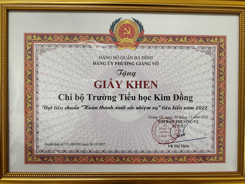 Tại Hội nghị sơ kết, Chi bộ trường Tiểu học Kim Đồng vinh dự là 1 trong 4 Chi bộ nhận Giấy khen dành cho Chi bộ “Hoàn thành xuất sắc nhiệm vụ” tiêu biểu năm 2022.