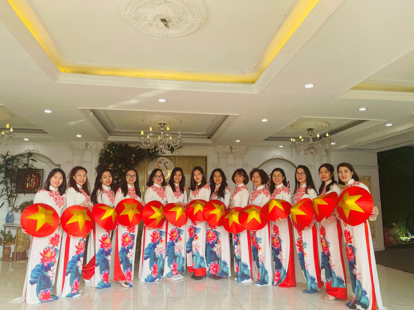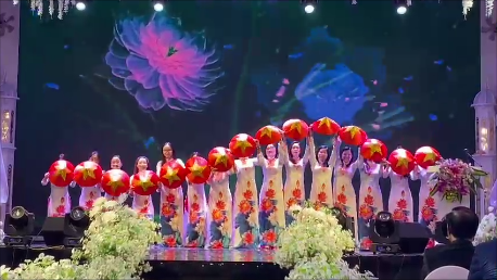 Tập thể giáo viên nhà trường tham gia biểu diễn văn nghệ chào mừng Hội nghị