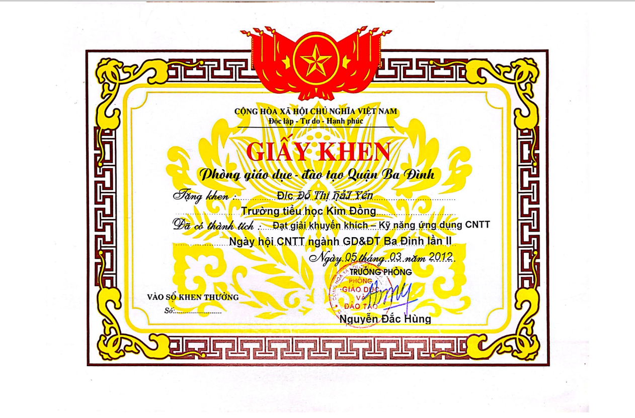 Trải qua thời gian, lòng yêu nghề mến trẻ trong cô vẫn vẹn nguyên. Thời gian càng chứng tỏ lòng yêu nghề và sự quyết tâm phấn đấu của người giáo viên ấy. Cô đã nhiều lần vinh dự được UBND quận Ba Đình tặng danh hiệu Chiến sĩ thi đua cấp cơ sở. Năm học 2011 - 2012, cô đạt giải Khuyến khích – KN ứng dụng CNTT do ngành GD&ĐT Ba Đình tổ chức