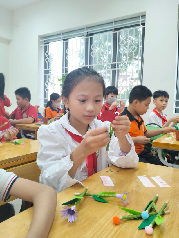 Trong các hoạt động của lớp, bên cạnh các tiết học văn hóa, cô luôn chú trọng để phát triển cho các em những bài học đạo đức hay những kĩ năng sống thông qua các tiết hoạt động ngoài giờ chính khóa. Có thể kể đến những tiết học về kĩ năng phòng cháy chữa cháy, kĩ năng phòng chống xâm hại,…. hay là những hoạt động liên quan đến các ngày lễ lớn trong năm,… Với các tiết học, cô luôn quan tâm đến việc dạy kĩ năng, các hoạt động thí nghiệm, thực hành cho học sinh. (học mà chơi, chơi mà học)