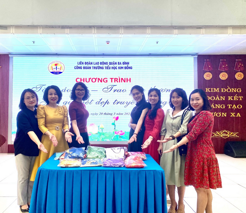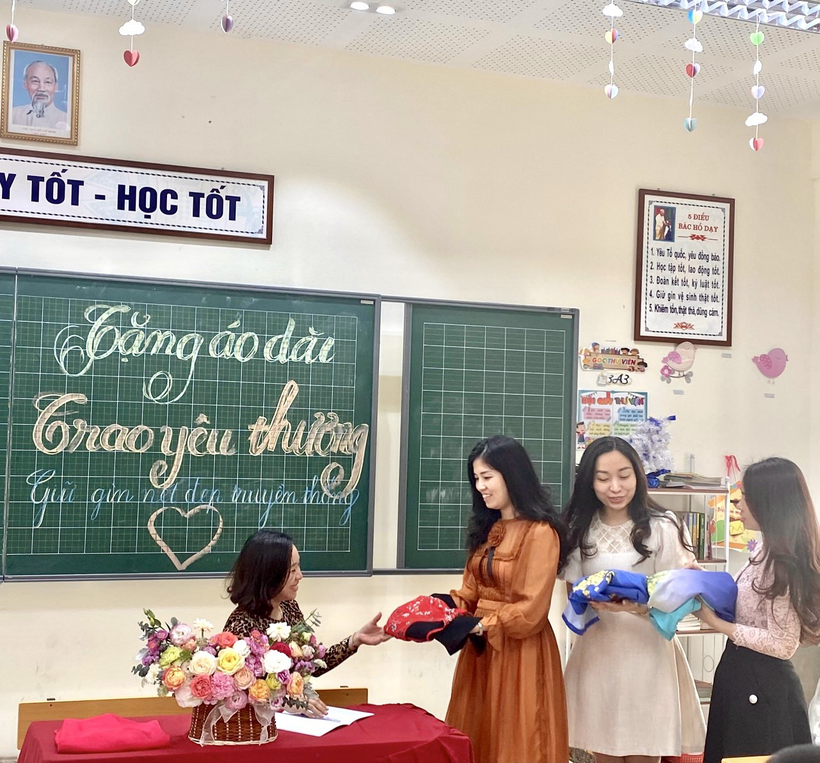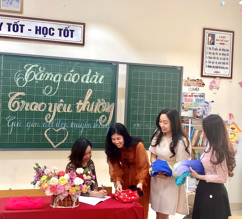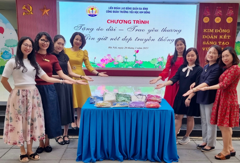Phụ nữ Việt có lẽ ai cũng muốn một lần được khoác lên mình tà áo dài dân tộc. Với các đoàn viên công đoàn trường Tiểu học Kim Đồng, việc diện trên mình những chiếc áo dài duyên dáng trong các dịp hội họp, sinh hoạt của nhà trường là việc làm thường xuyên. Nhưng với phụ nữ lao động tự do, những nữ giáo viên công tác tại vùng cao, vùng kinh tế khó khăn, họ rất hiếm khi được mặc áo dài và cũng không ít người chưa có riêng cho mình một bộ áo dài. Do đó, khi Hội Liên hiệp phụ nữ thành phố Hà Nội triển khai hoạt động quyên góp, gửi tặng áo dài, các cô giáo của nhà trường đã nhiệt tình hưởng ứng hoạt động này.