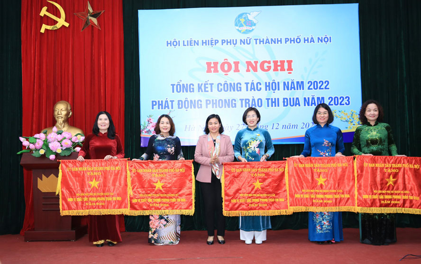Với mục tiêu luôn chăm lo thiết thực cho phụ nữ và trẻ em, Hội Liên hiệp phụ nữ thành phố Hà Nội đã nỗ lực hoàn thành xuất sắc nhiệm vụ năm 2022. Ngoài ra, Hội luôn tích cực tham gia phong trào phòng, chống dịch Covid, hỗ trợ phụ nữ phục hồi phát triển kinh tế sau đại dịch. Hội cũng đẩy mạnh xã hội hóa hỗ trợ vật dụng, nhu yếu phẩm cho công tác phòng, chống dịch. Ngoài ra, Hội đã vận động được nguồn lực xã hội lên tới 1,9 tỉ đồng cho các suất quà cho phụ nữ nghèo, trẻ em mồ côi, gia đình có hoàn cảnh khó khăn, …