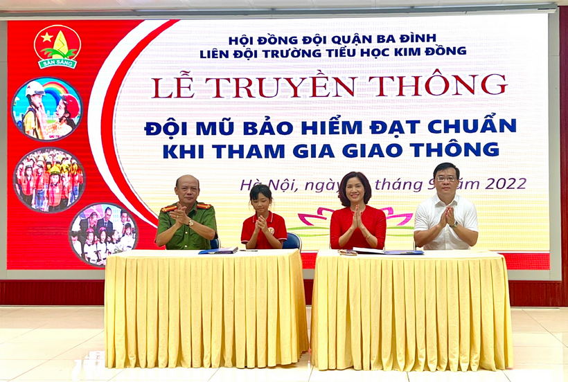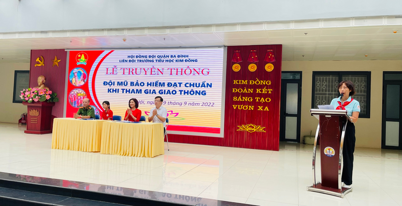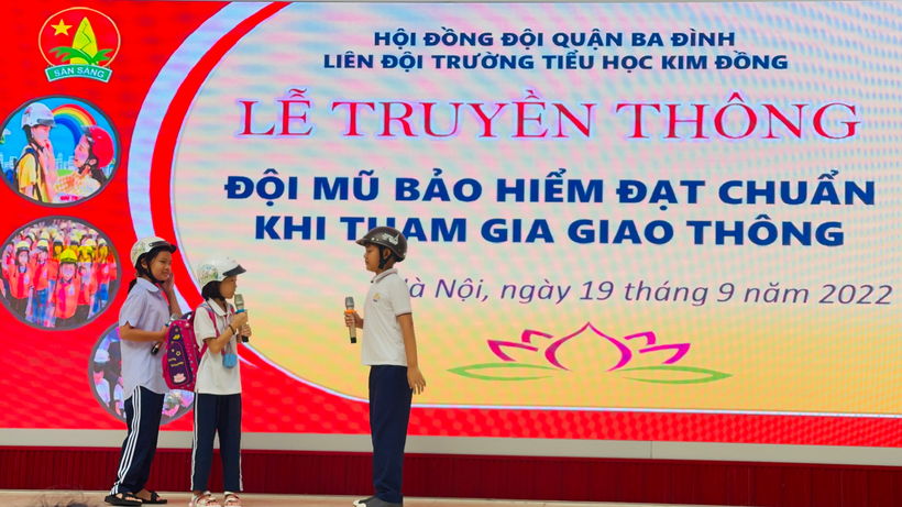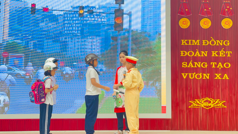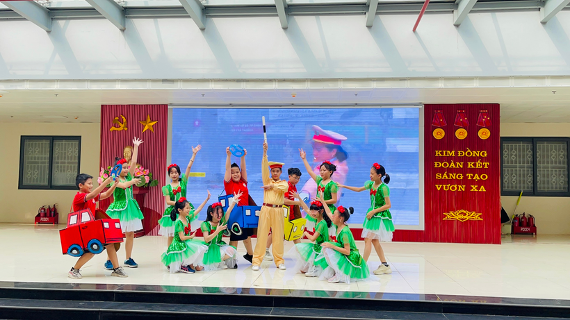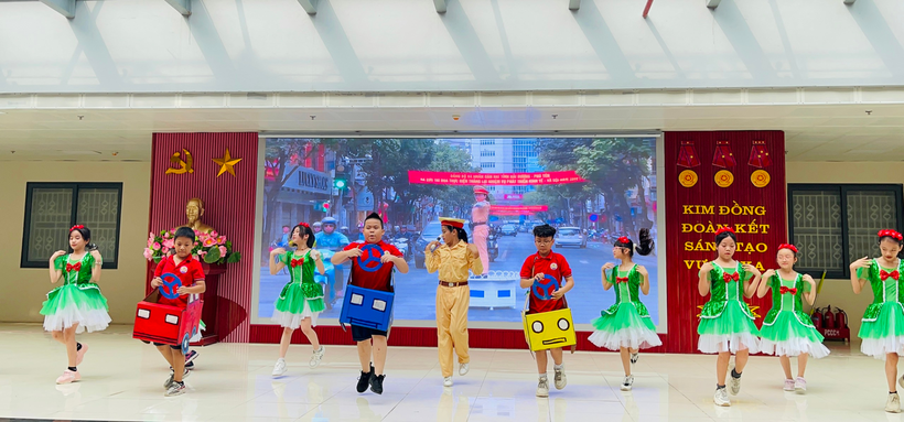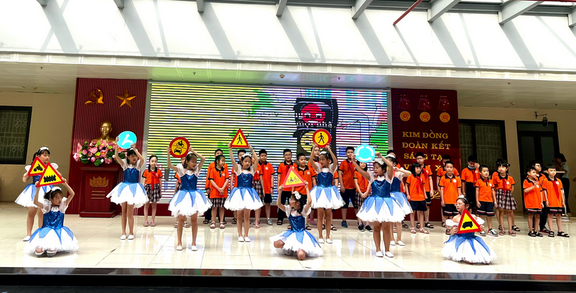 Cũng trong buổi lễ, trong tiết Sinh hoạt dưới cờ đầu tuần, thông qua các tiết mục văn nghệ đặc sắc với chủ điểm An toàn giao thông, các Chi đội măng non đã gửi tới các bạn học sinh và các thầy cô giáo thông điệp: An toàn giao thông là bạn! Vì sự an toàn của bản thân và xã hội, mọi người tham gia giao thông hãy tự nâng cao ý thức chấp hành luật giao thông đường bộ để hạn chế ùn tắc và giảm thiểu tai nạn giao thông. Đội mũ bảo hiểm đạt chuẩn là bảo vệ chính mình.