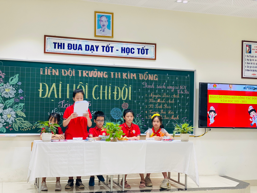 Đến dự Đại hội có cô tổng phụ trách Bùi Hoa Lê và cô chủ nhiệm Nguyễn Thị Thu Hương - phụ trách chi đội và toàn thể các bạn đội viên chi đội 5A5. Sau lễ chào cờ nghiêm túc, chi đội được nghe bạn Bùi Bảo Khánh trình bày bản báo cáo tổng kết công tác Đội năm học 2021 – 2022. Bản báo cáo tổng kết đã nêu được những thành tích đáng tự hào và cũng chỉ rõ những mặt còn hạn chế của chi đội trong năm học vừa qua.