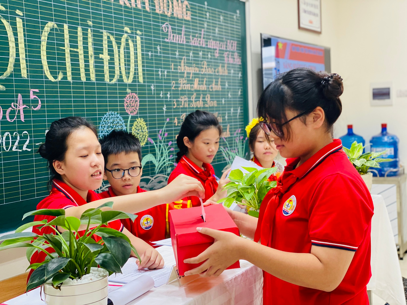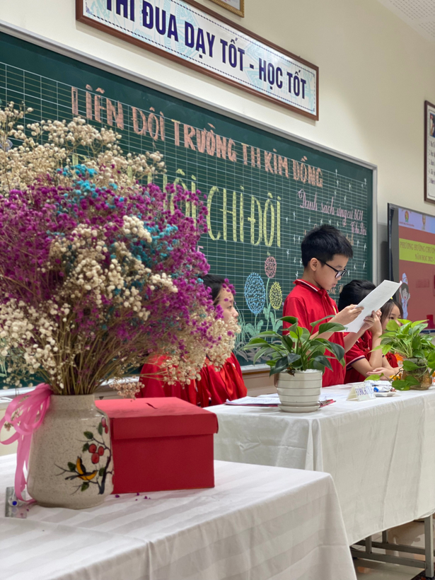 Phần quan trọng nhất của đại hội là phần bầu cử. Nội dung này được chi đội lớp 5A5 thực hiện rất nghiêm túc và chuyên nghiệp.