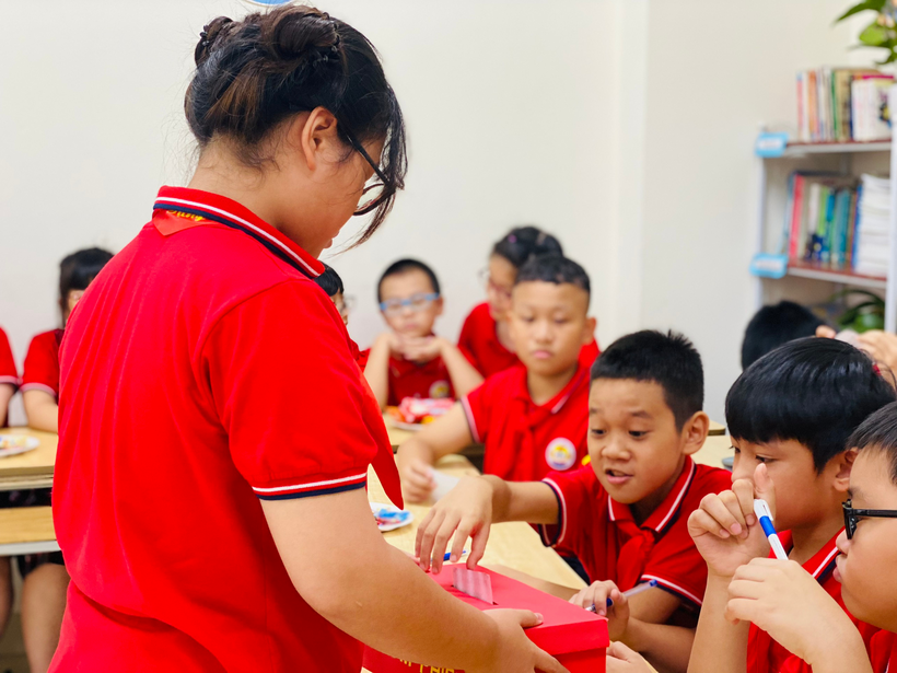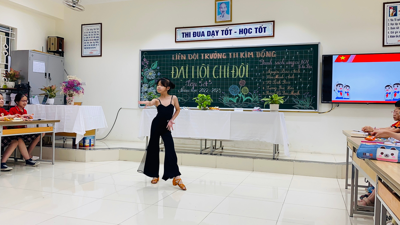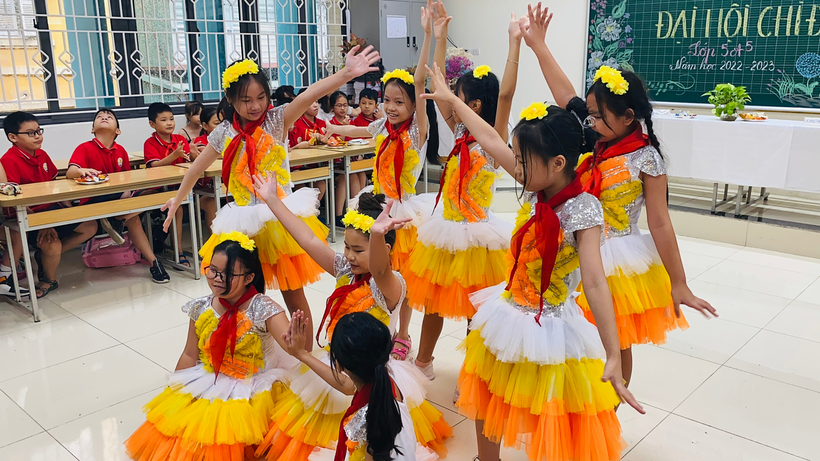 Trong khi chờ đợi Ban bầu cử làm việc, các bạn đội viên cùng nhau thưởng thức các tiết mục văn nghệ do các bạn đội viên chi đội lớp 5A5 biểu diễn.