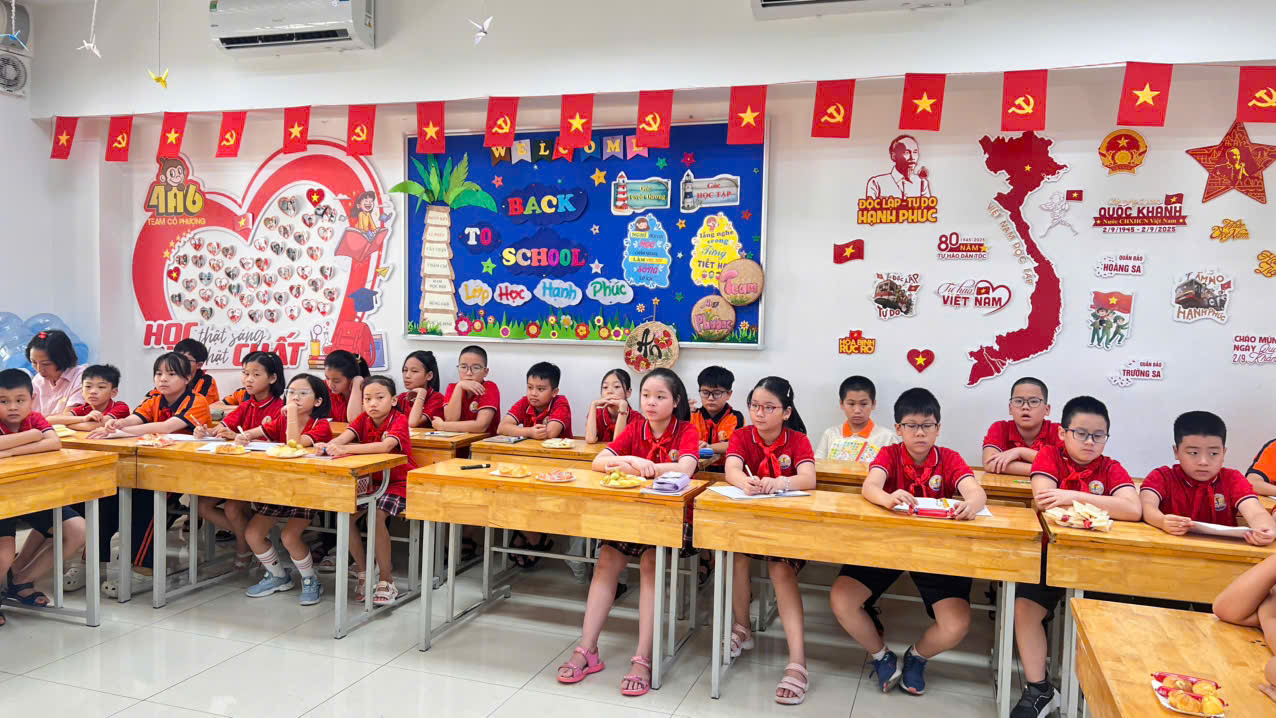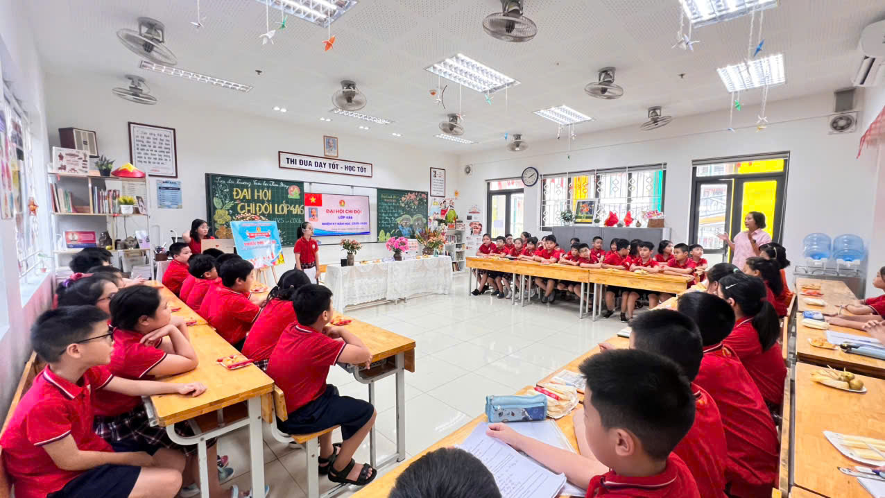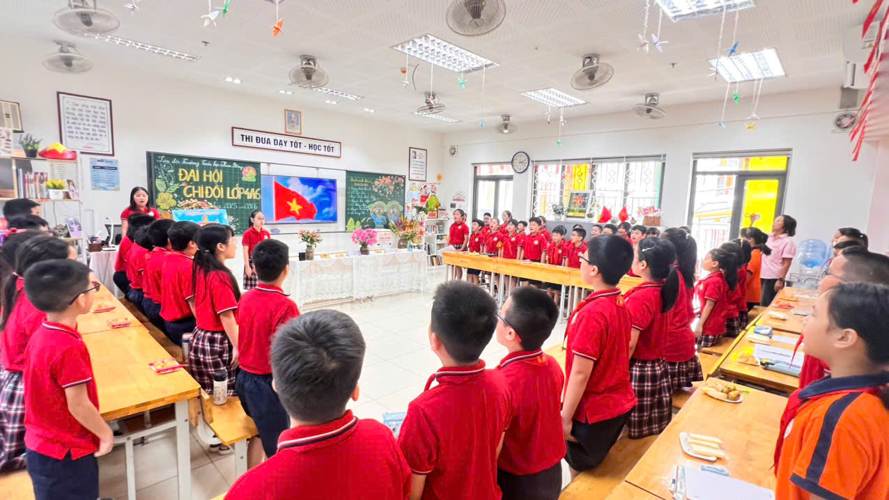 Ngay từ đầu buổi, bầu không khí đã trở nên trang nghiêm và rực rỡ với sắc đỏ của khăn quàng, sắc áo đồng phục và gương mặt rạng rỡ của các em học sinh. Nghi lễ chào cờ thiêng liêng, các tiết mục văn nghệ ý nghĩa và phần báo cáo tổng kết đầy đủ, rõ ràng đã tạo nên không khí sôi nổi, hào hứng nhưng cũng rất nghiêm túc.