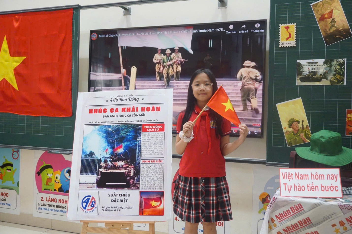 Bộ phim kết thúc trong tràng vỗ tay không ai bảo ai. Và rồi khi hình ảnh chiếc xe tăng húc đổ cánh cổng Dinh Độc Lập hiện lên, cờ giải phóng tung bay trên nóc nhà, cả lớp như vỡ òa. “Chiến thắng rồi!”, các em reo lên. Ánh mắt rạng ngời, tiếng cười vang lên như thể các em vừa chính mình được sống trong khoảnh khắc lịch sử ấy.