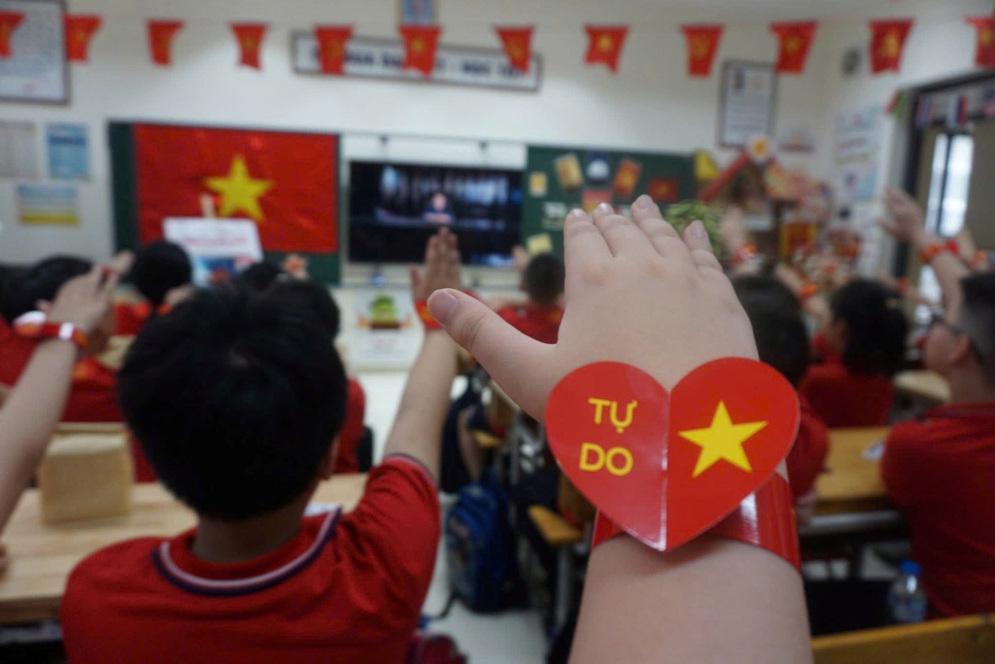 Ở góc bảng, dòng khẩu hiệu “Việt Nam hôm nay – Tự hào tiến bước” vẫn lặng lẽ nằm đó như một lời nhắc. Lịch sử là hành trình tiếp nối, và thế hệ hôm nay chính là người viết tiếp bản anh hùng ca ấy – bằng tri thức, bằng tình yêu đất nước, bằng trái tim trong sáng của tuổi thơ.