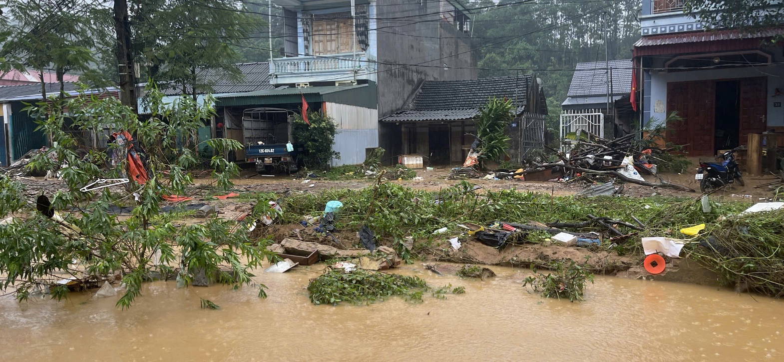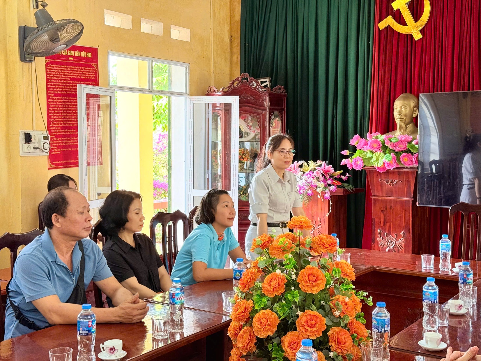 Cô giáo Vũ Thị Hương Giang - Phó Hiệu trưởng nhà trường chia sẻ cùng các thầy cô vùng lũ