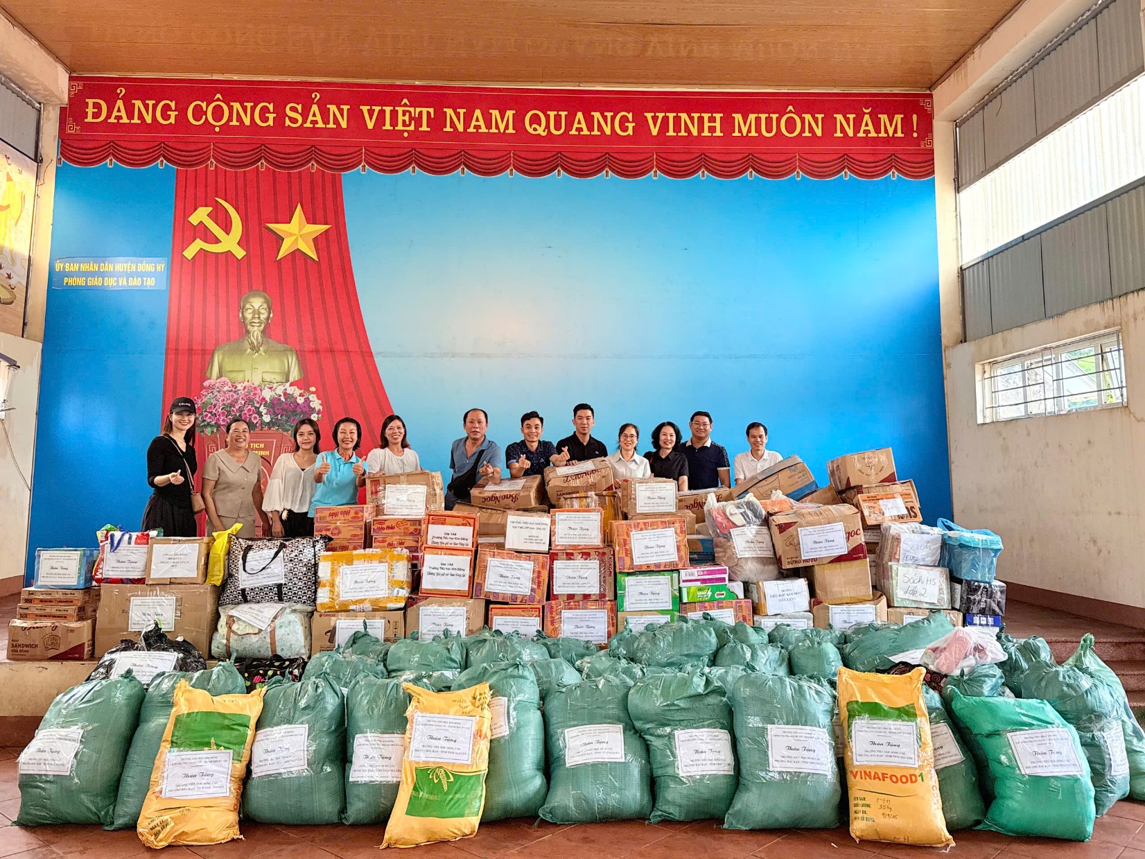 Kết quả, nhà trường đã quyên góp được 35 tải quần áo, hơn 8000 cuốn sách giáo khoa, gần 7000 quyển vở, 1100 bảng viết (trị giá hơn 12 triệu), 310 kg gạo (trị giá 7 triệu), 20 thùng sữa và bánh kẹo, 40 thùng mỳ, cùng 50 ba lô, hơn nghìn bút viết và đồ dùng học tập. Các phần quà đã được các thầy cô và phụ huynh nhà trường phân loại, đóng gói cẩn thận để chuyển tới vùng bị thiệt hại. Đây không chỉ là những món quà vật chất mà còn là tấm lòng, sự sẻ chia của cán bộ giáo viên, nhân viên, các bậc cha mẹ, các em học sinh gửi tới vùng bão lũ.