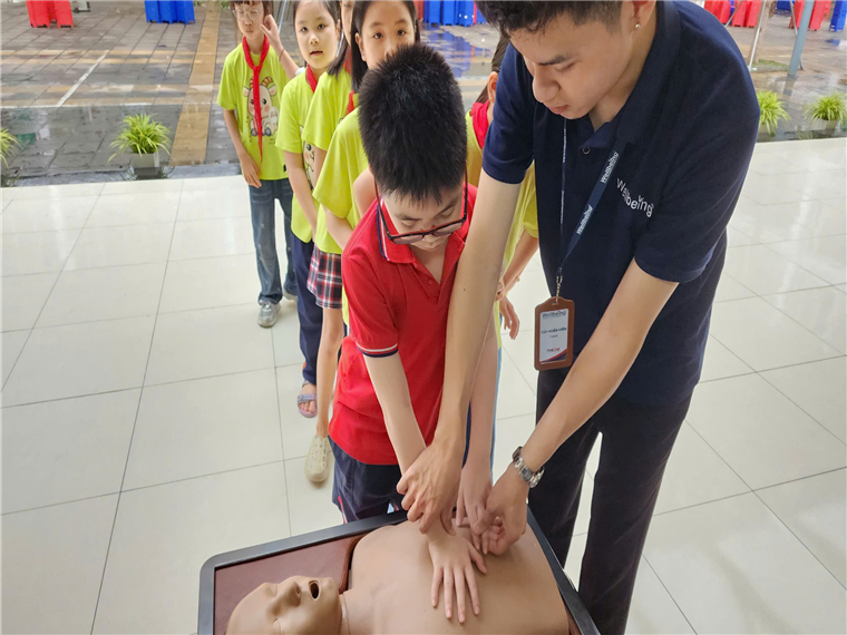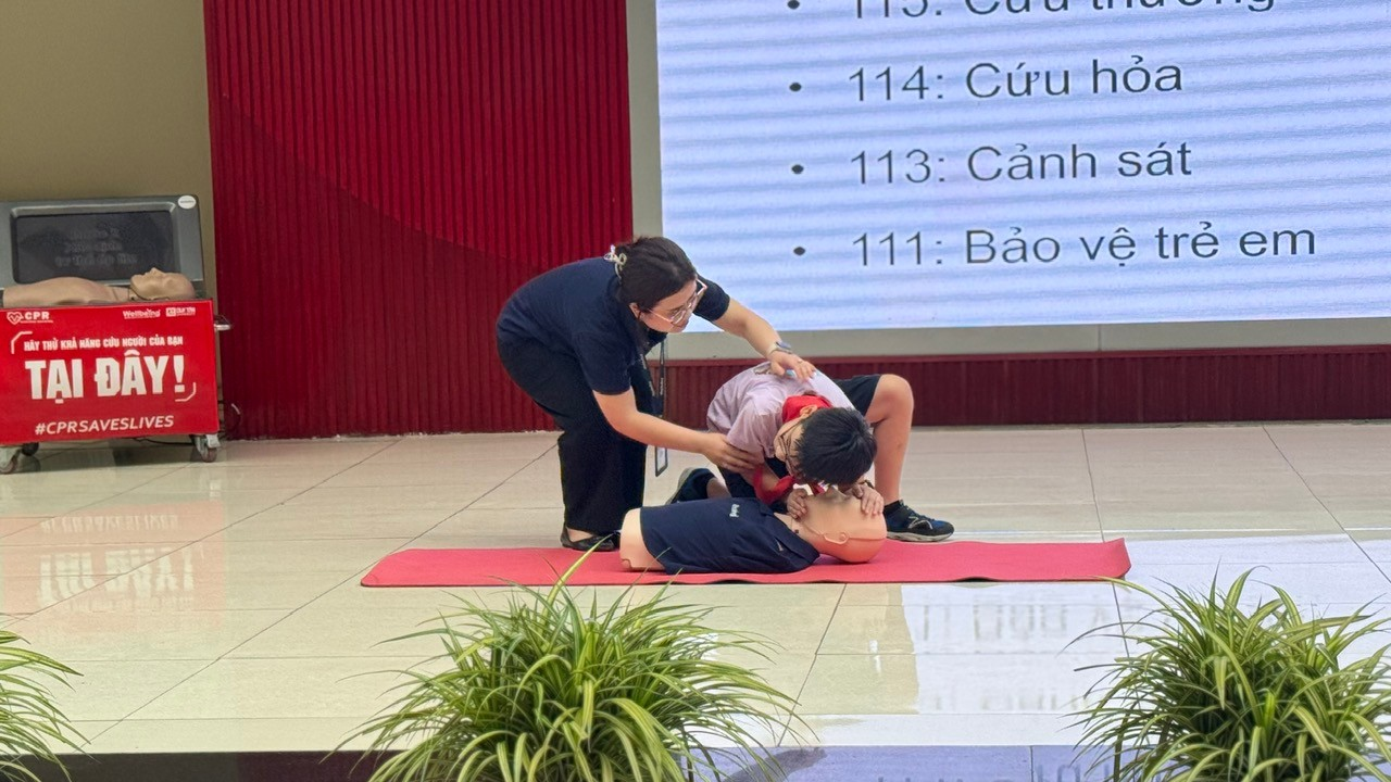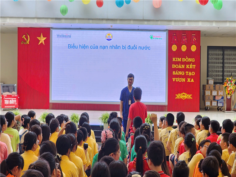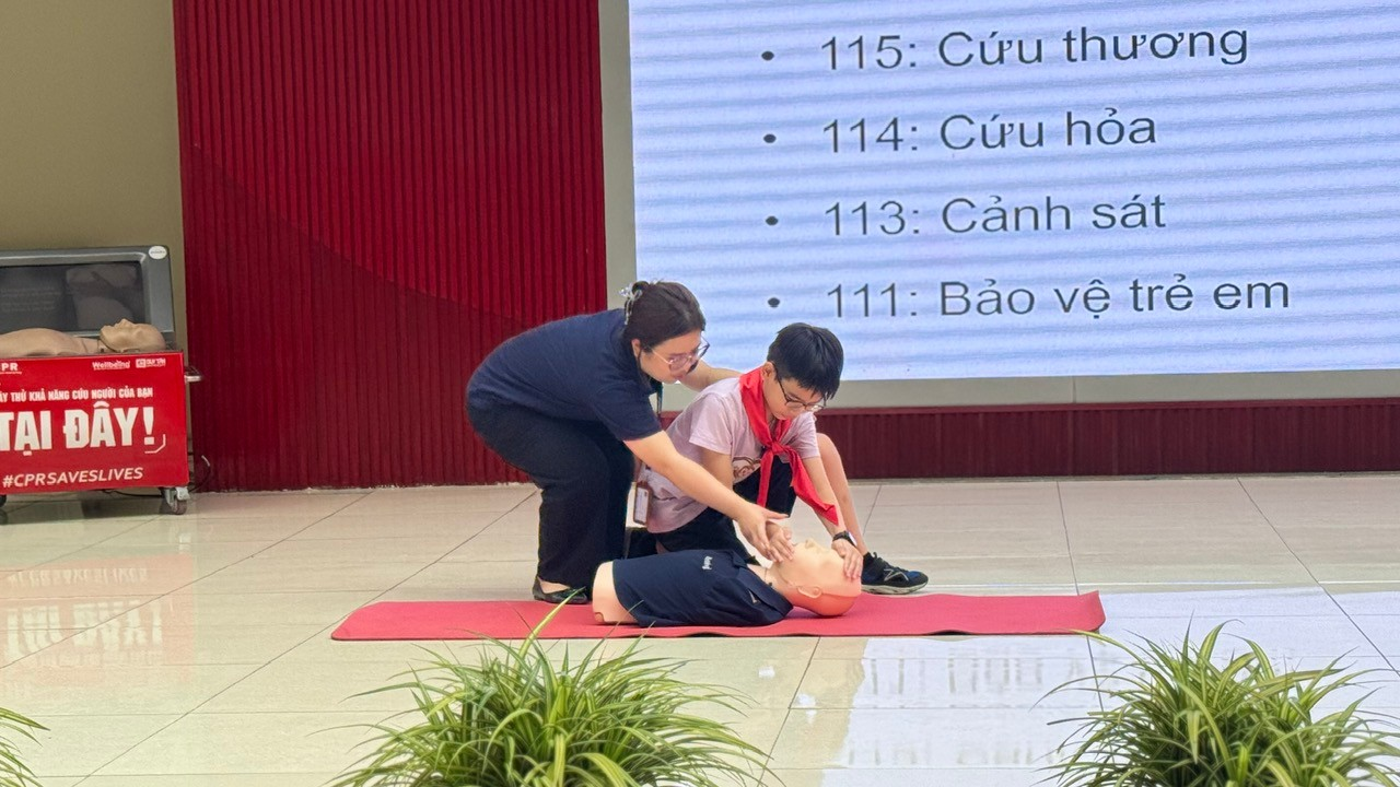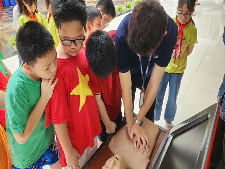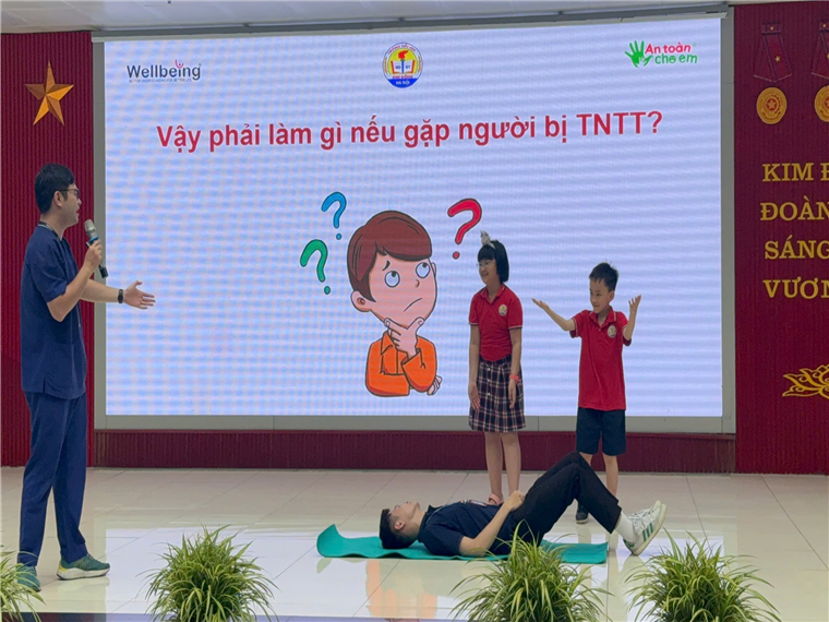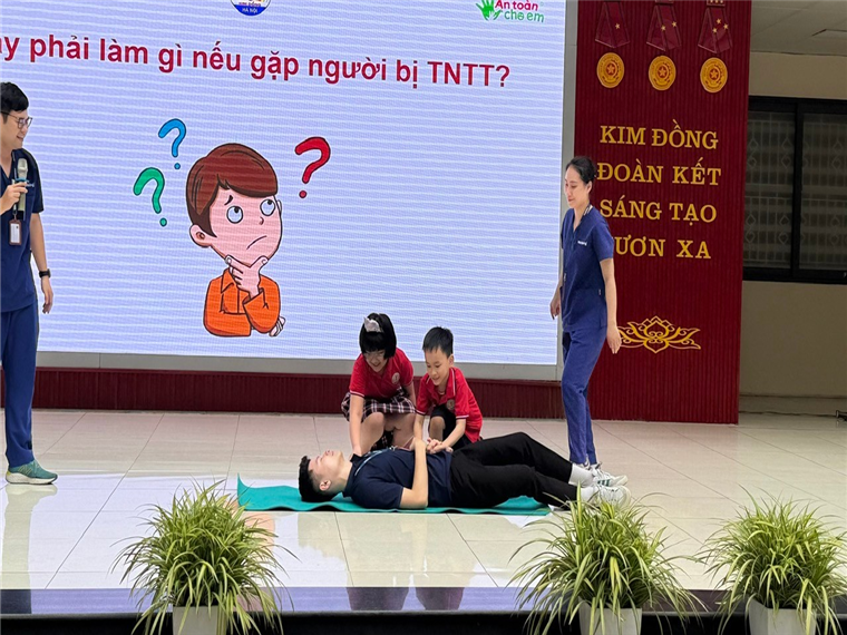 + Khối lớp 4, 5: Phòng chống và sơ cứu đuối nước với công nghệ eCPR: Học sinh được hướng dẫn nhận biết các vùng nước nguy hiểm cần tránh, các bước gọi hỗ trợ và sơ cứu đúng cách. Đặc biệt, các con có cơ hội trải nghiệm công nghệ huấn luyện hồi sinh tim phổi eCPR – một công nghệ hiện đại có một không hai, lần đầu tiên xuất hiện tại trường Tiểu học Kim Đồng.