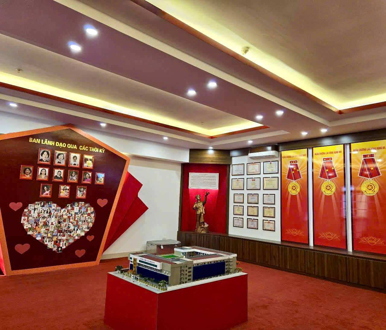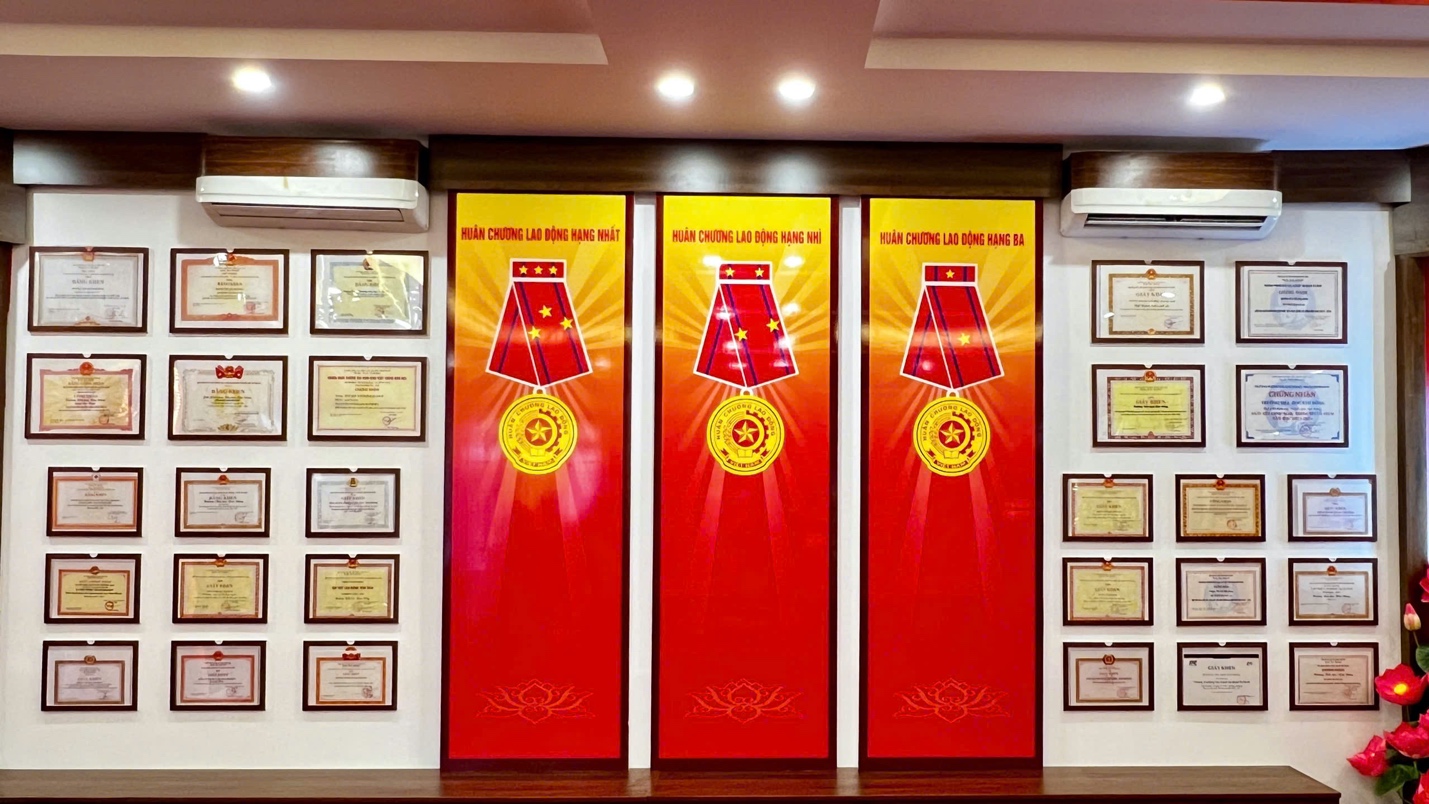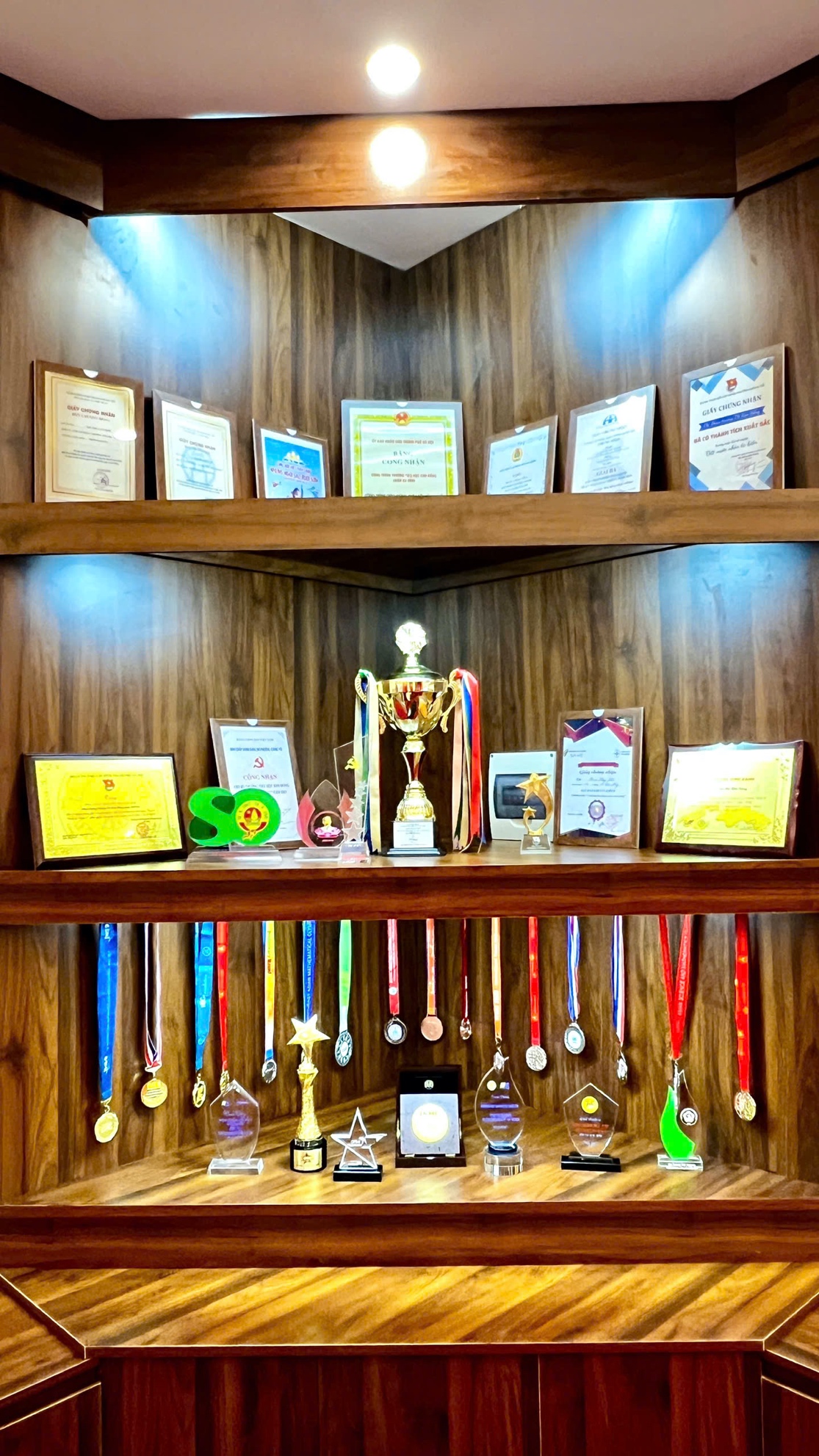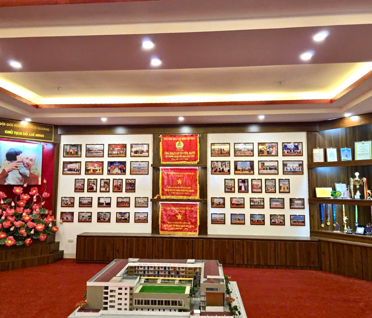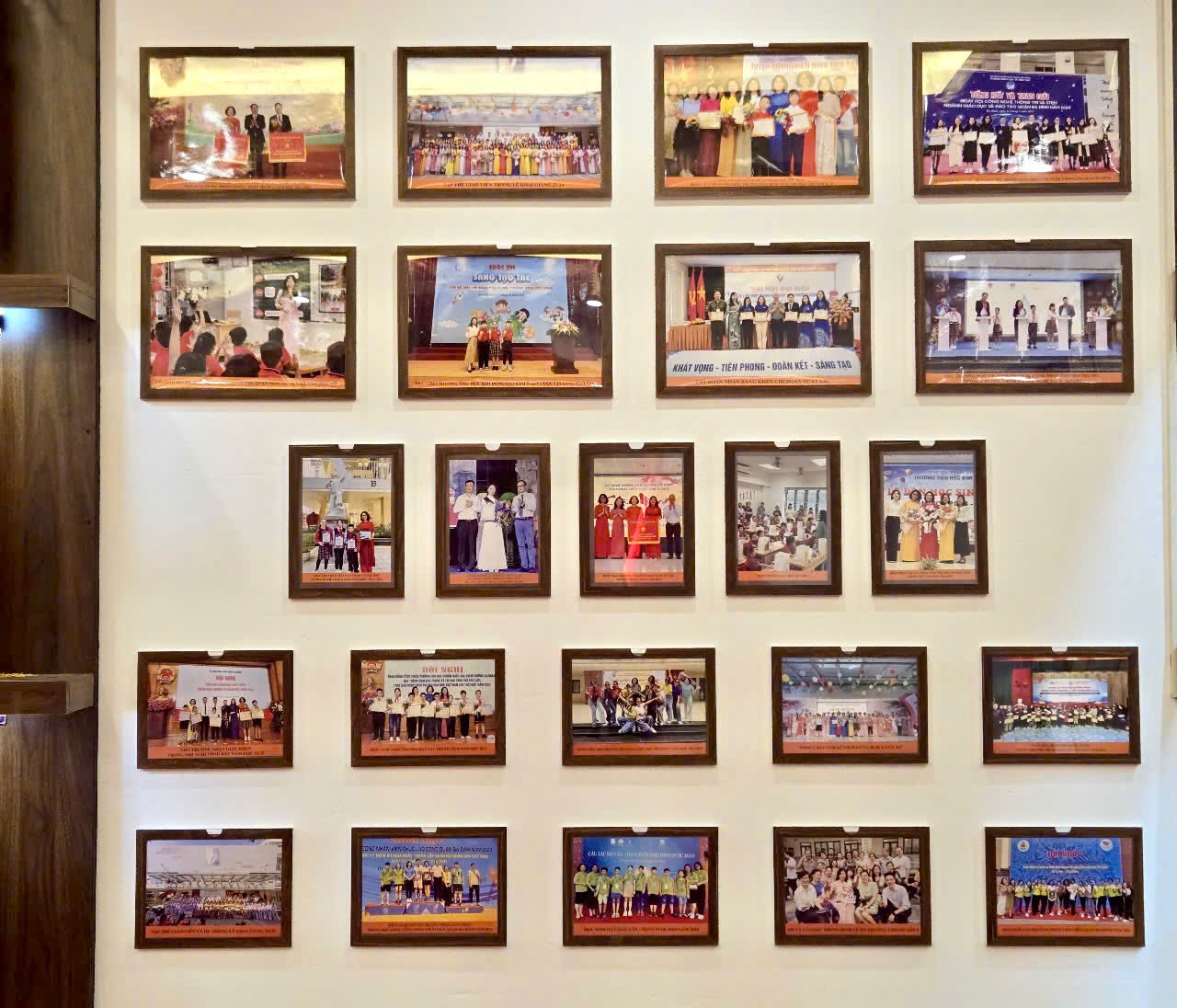 Tiếp đến là khu vực trưng bày Bằng khen, Cờ thi đua mà cán bộ, giáo viên và học sinh nhà trường đã đạt được tại các cuộc thi Nghiệp vụ Sư phạm, Olympic, thi đấu thể thao…, các sản phẩm khoa học. Mỗi hiện vật, chiếc cúp, tấm huy chương trưng bày là một câu chuyện kể đầy sinh động về những đóng góp của các thế hệ cán bộ, giáo viên, nhân viên và học sinh đã làm việc và học tập nơi đây.