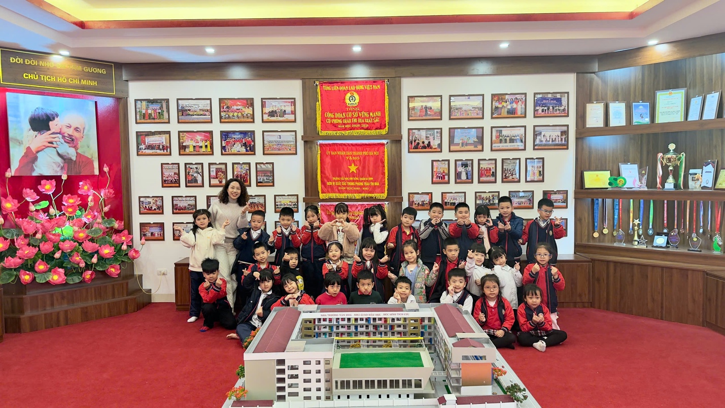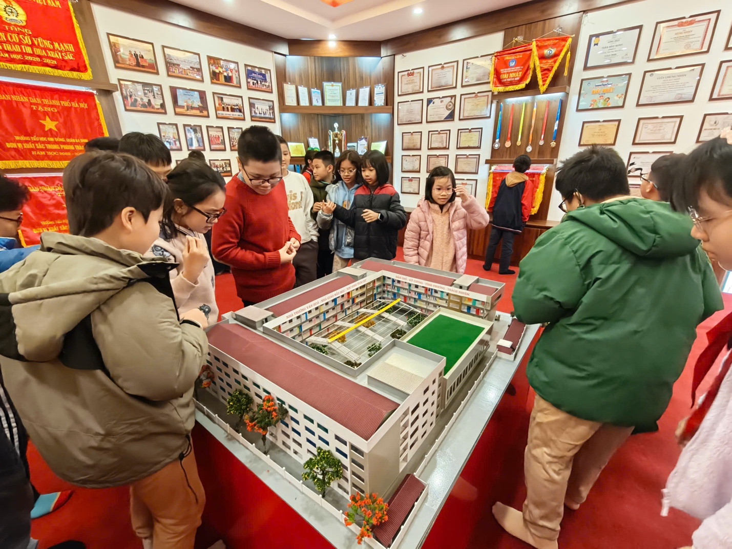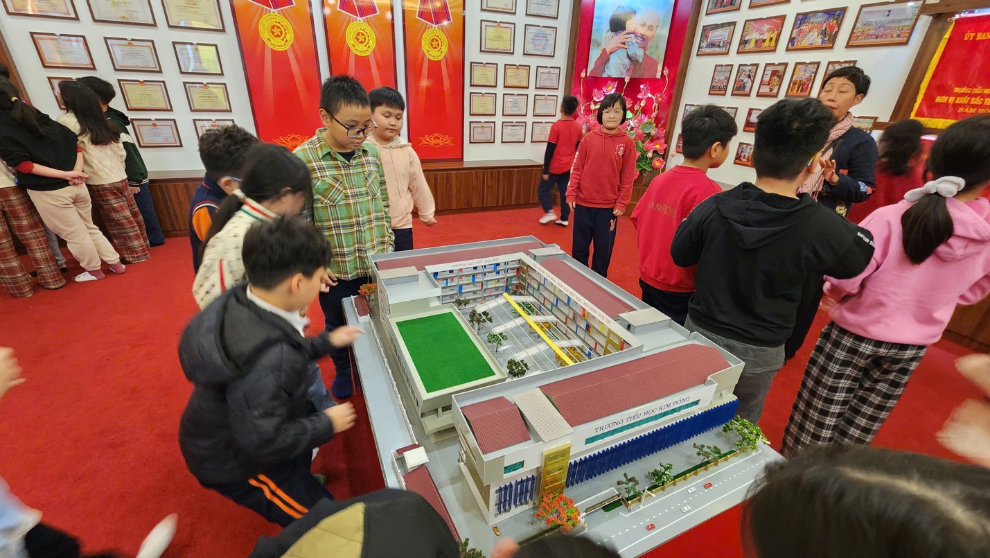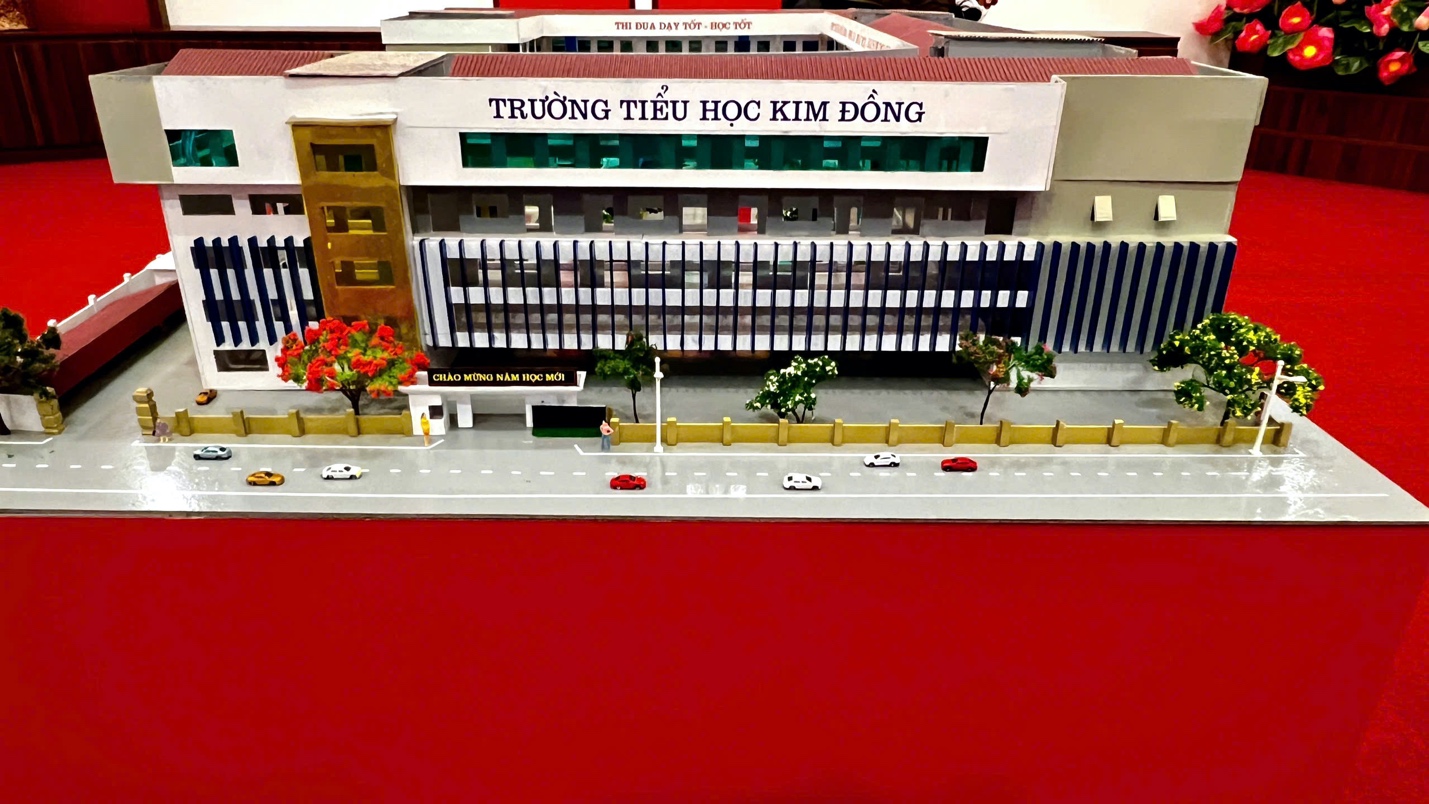 Chính giữa gian phòng, thu hút sự chú ý của các con học sinh, đó là mô hình mô phỏng công trình nhà trường hiện tại. Với việc mô phỏng lại quang cảnh nhà trường, mô hình mang tính biểu tượng và có ý nghĩa rất đặc biệt. Điều này thể hiện sự trân trọng sâu sắc dành cho các thế hệ nhà giáo đã và đang công tác tại trường cũng như lớp lớp học sinh; góp phần thể hiện tinh thần một Kim Đồng đoàn kết, phát triển.