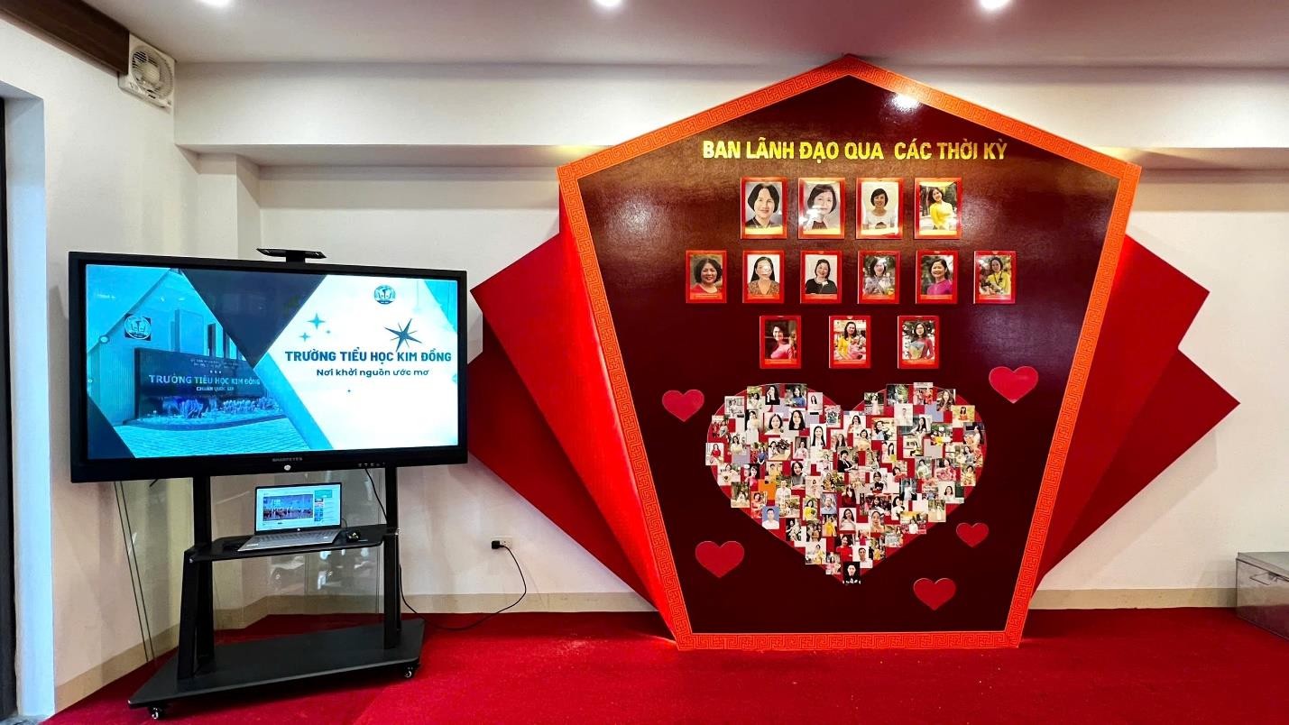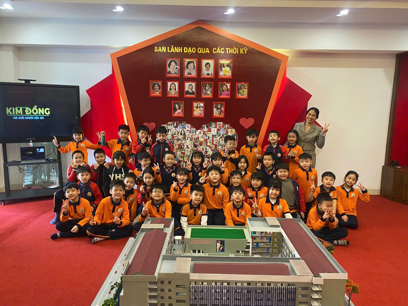 Bước vào gian phòng tuy nhỏ nhắn nhưng rất khang trang và ấm áp, ấn tượng đầu tiên chính là bức tượng anh Kim Đồng được đặt ngay ngắn, trang trọng giữa phòng. Bên trái tượng là lịch sử hình thành phát triển, sứ mệnh, tầm nhìn, các Quyết định của trường Tiểu học Kim Đồng; các bằng khen, danh hiệu cao quý do Nhà nước, UBND thành phố Hà Nội trao tặng. Bên phải tượng là hình ảnh Ban lãnh đạo nhà trường qua các thời kỳ - những người dẫn dắt tâm huyết, tận tụy, trách nhiệm và có tầm nhìn sâu rộng chèo lái con thuyền tri thức. Hình ảnh các nhà giáo - người ươm mầm cho bao thế hệ tương lai nổi bật trên nền trái tim đỏ thắm. Trái tim lớn đầy ắp tình yêu nghề, mến trẻ, sự tận hiến dành cho sự nghiệp trồng người; bằng trí tuệ và lòng nhiệt thành, tất cả đều hướng đến kế thừa và phát huy truyền thống, vun đắp để xây dựng ngôi trường ngày một lớn mạnh.