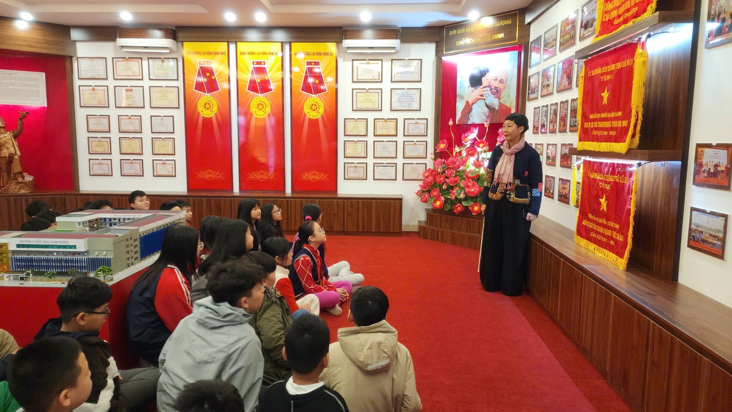 Nhằm khơi dậy ở các con học sinh lòng biết ơn về nguồn cội, hướng đến các giá trị truyền thống tốt đẹp, nhà trường đã tổ chức cho các bạn học sinh tham quan phòng Truyền thống. Đến đây, các bạn học sinh không khỏi tự hào, vui mừng khi được lắng nghe những câu chuyện, từng giai đoạn phát triển của nhà trường qua những bức ảnh, hiện vật quý giá.