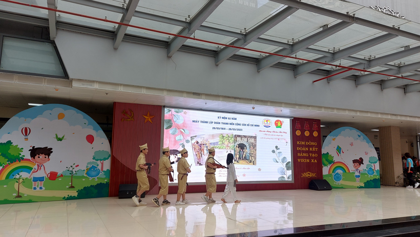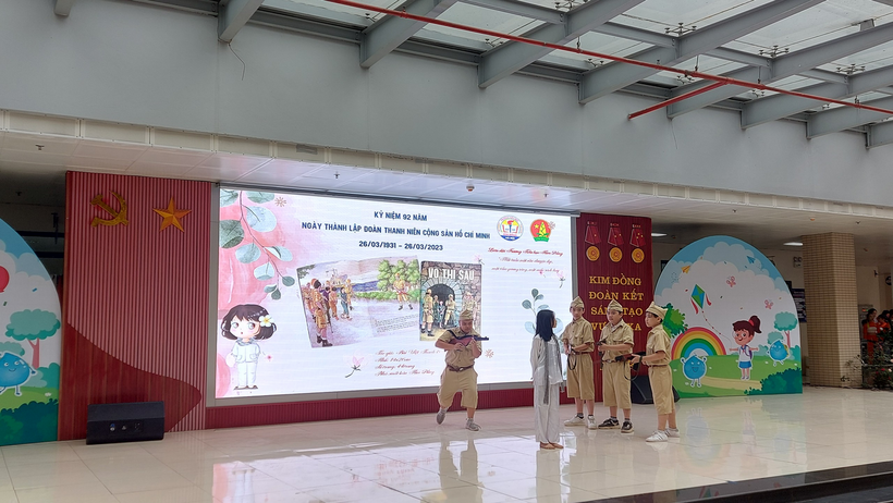 Tiếp theo chương trình, các em được giao lưu và xem tiểu phẩm “Võ Thị Sáu” trong hoạt động giới thiệu sách “Mỗi tuần một câu chuyện đẹp, một tấm gương sáng, một cuốn sách hay”, cùng hướng tới chủ điểm tháng 3 “ Tiếp bước cha anh” do Liên đội phát động.