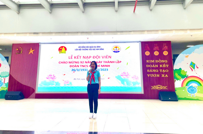 Mang trên vai chiếc khăn quàng đỏ thắm, nghiêm trang đưa tay chào cờ trong mỗi buổi sinh hoạt tập thể đầu tuần, đó là mơ ước cũng như niềm tự hào của lớp lớp các thế hệ thiếu niên, nhi đồng Việt Nam nói chung và các em học sinh Liên đội trường Tiểu học Kim Đồng nói riêng.
