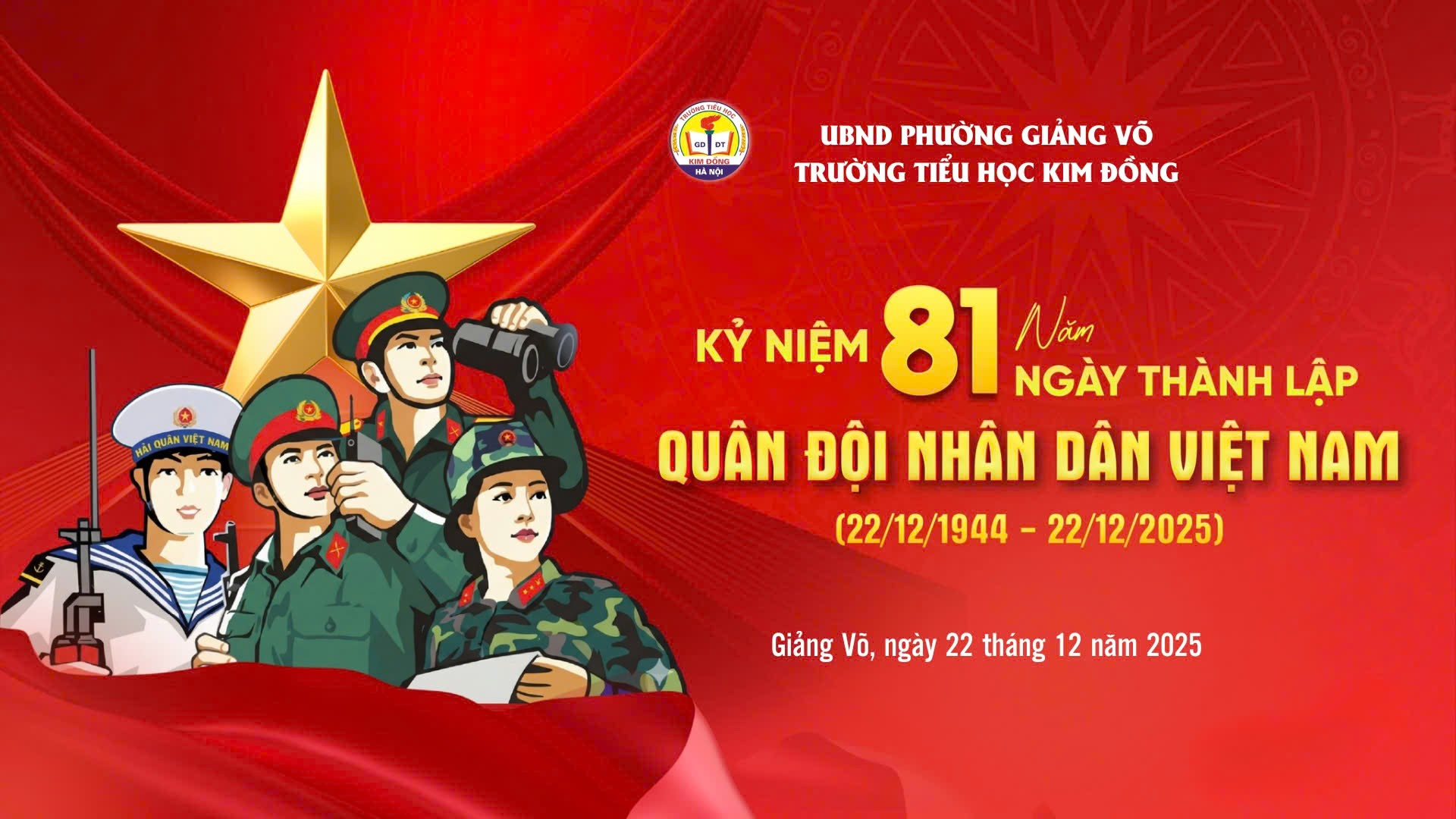 Dưới đấy là một số hình ảnh hoạt động của học sinh Liên đội trường Tiểu học Kim đồng tuyên truyền kỷ niệm 81 năm ngày Quân đội nhân dân Việt Nam. (22/12/2025)