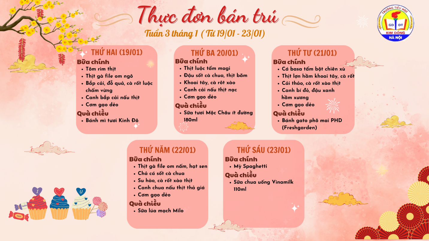 Thực đơn bán trú học sinh Tuần 3 tháng 1 - Trường Tiểu học Kim Đồng