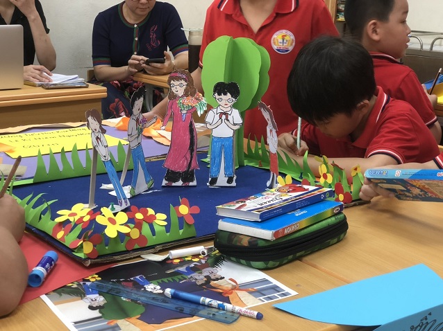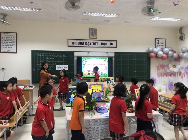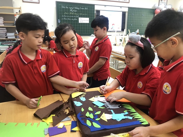Trong tiết học các em đã rất tự tin thể hiện năng lực, khả năng giao tiếp, hợp tác làm việc nhóm, kĩ năng trình bày vấn đề, khả năng sáng tạo và thẩm mỹ để tạo ra sản phẩm là những bức tranh, mô hình đa chất liệu như vải dạ, màu vẽ, giấy bìa, giấy thủ công,... Ngoài ra, các em còn được đi thăm quan triển lãm các sản phẩm các nhóm nên các em rất háo hức, phấn khởi. Giờ học đã diễn thật sôi nổi, vui vẻ, hứng thú, em học sinh nào cũng tự tin và say mê học tập.