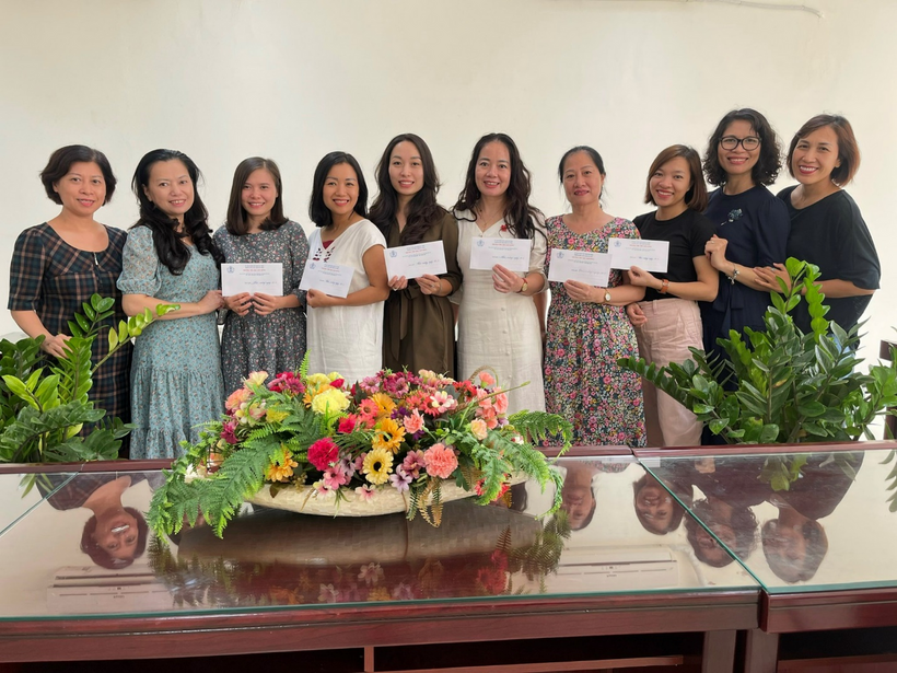 Đại diện BGH, CĐ nhà trường gửi tới các đồng chí Công an Quận Ba Đình lẵng hoa tươi thắm