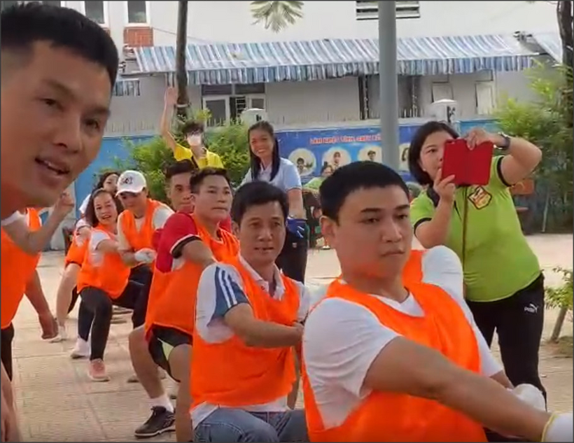 BGH, đại diện Công đoàn cùng Đội tuyển kéo co của Trường Tiểu học Kim Đồng