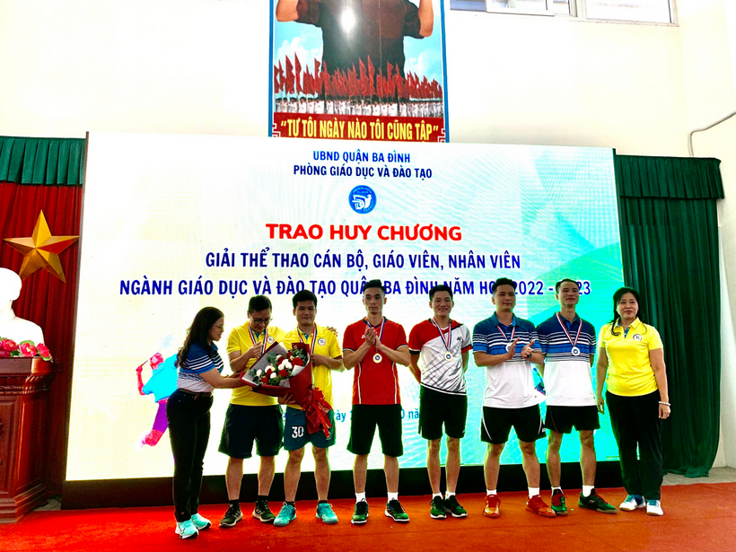 Giải thể thao cán bộ, giáo viên, nhân viên ngành GD&ĐT năm học 2022-2023 quận Ba Đình với ba nội dung thi đấu gồm: Kéo co, Bóng bàn và Cầu lông được diễn ra tại Trường THCS Phan Chu Trinh và Trường Tiểu học Ngọc Khánh.