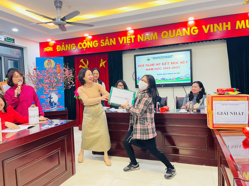 Tham dự Hội nghị sơ kết có đầy đủ Cán bộ - Giáo viên – Nhân viên nhà trường. Mở đầu Hội nghị đồng chí Nguyễn Thị Vân Anh – Bí thư Chi bộ - Hiệu trưởng nhà trường đã khai mạc hội nghị bằng một lời cảm ơn thật chân thành gửi đến tất cả các giáo viên, cán bộ, nhân viên. Lời cảm ơn ngắn gọn mà chứa đựng đầy đủ sự đồng cảm, thấu hiểu, ghi nhận và trân trọng của Ban giám hiệu nhà trường trước những nỗ lực, cố gắng của toàn thể hội đồng sư phạm trong học kì I vừa qua, đồng thời đồng chí Hiệu trưởng cũng trình bày bản báo cáo Sơ kết học kì I năm học 2022 - 2023 về các hoạt động giáo dục toàn diện của nhà trường, tuyên dương những thành tích của tập thể GV và HS nhà trường đã đạt được trong học kì I vừa qua; tiếp tục động viên giáo nhà trường phát huy những điểm mạnh trong công tác đổi mới giáo dục theo chỉ đạo của Phòng Giáo Dục và Đào tạo Quận Ba Đình.