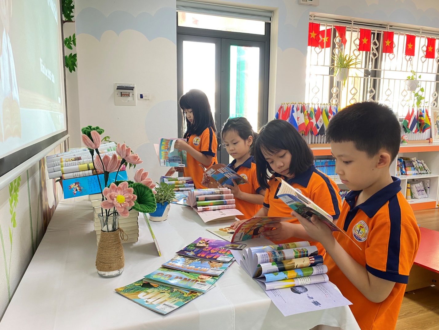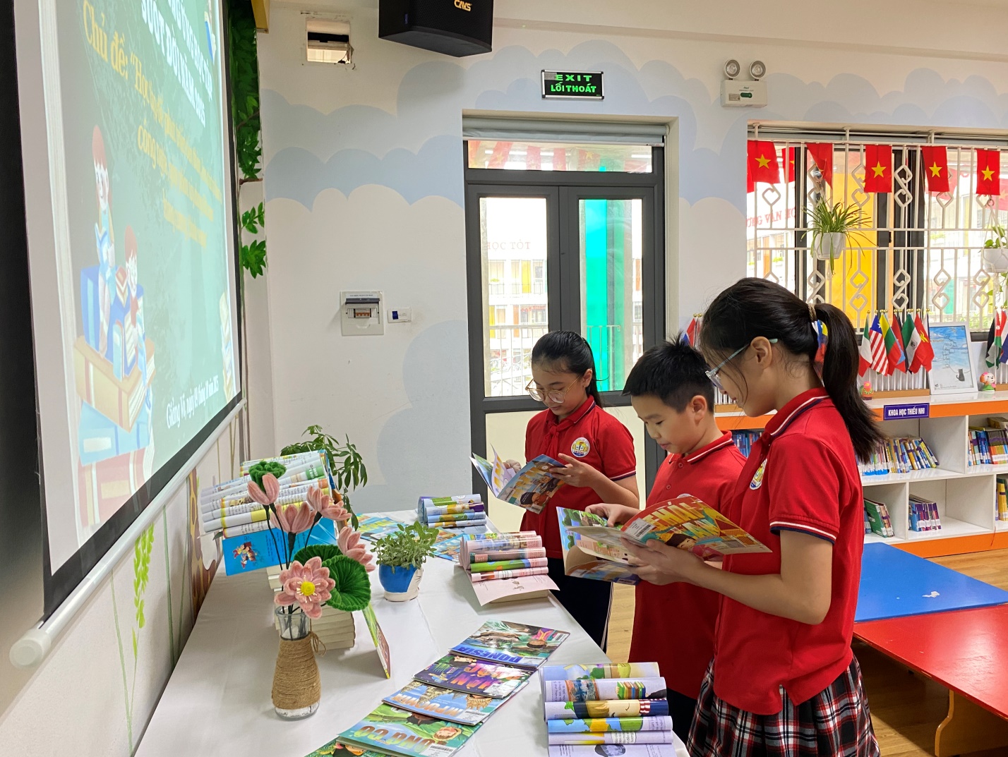 Bên cạnh đó, hoạt động xây dựng và phát triển thư viện số, tủ sách lớp học được đẩy mạnh. Nhiều tiết sinh hoạt 15 phút, giờ đọc sách, hoạt động kể chuyện – vẽ tranh theo sách được tổ chức, giúp các em học sinh thêm yêu sách, say mê khám phá tri thức. Mỗi cuốn sách, mỗi câu chuyện nhỏ đều trở thành ngọn lửa ấm nuôi dưỡng tâm hồn và trí tuệ trẻ thơ, đã được lan tỏa mạnh mẽ, trở thành nét đẹp trong đời sống văn hóa học đường của Trường Tiểu học Kim Đồng.