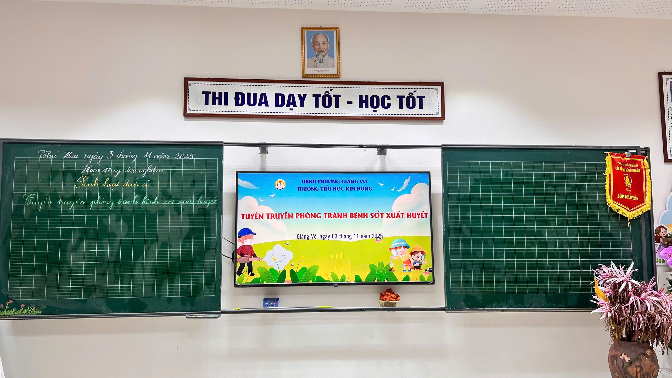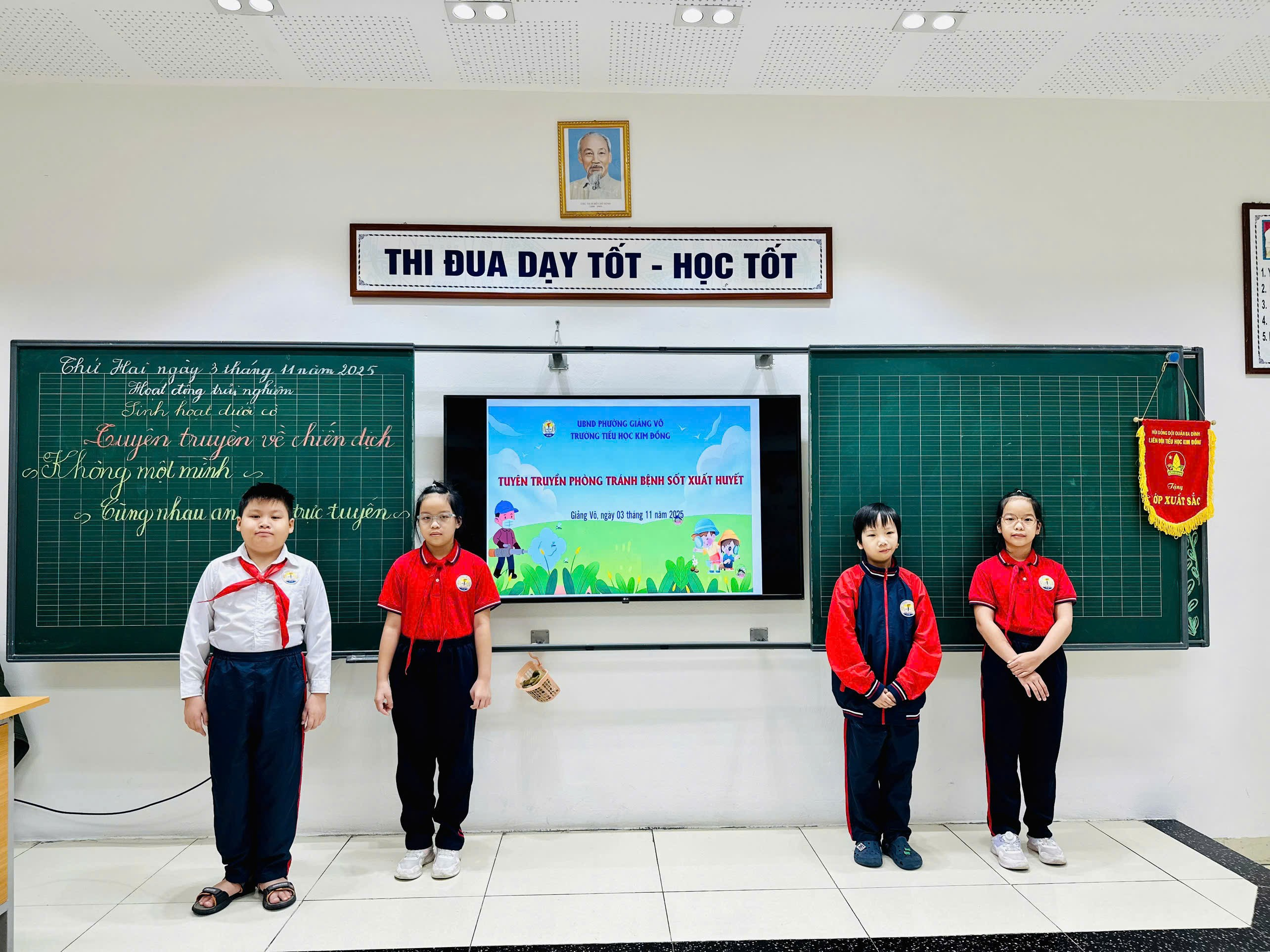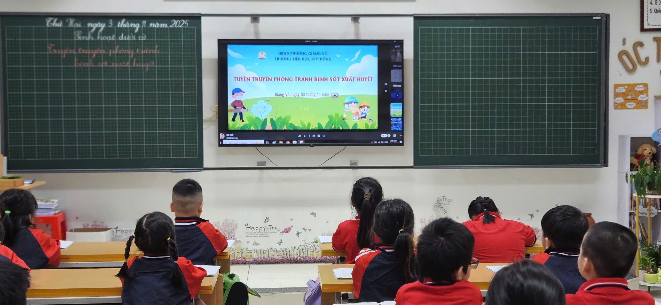 Thực hiện sự chỉ đạo của UBND phường Giảng Võ, sáng ngày 03 tháng 11 năm 2025, Trường Tiểu học Kim Đồng đã tổ chức buổi tuyên truyền phòng, chống bệnh sốt xuất huyết cho toàn thể học sinh trong nhà trường trong giờ hoạt động sinh hoạt dưới cờ.