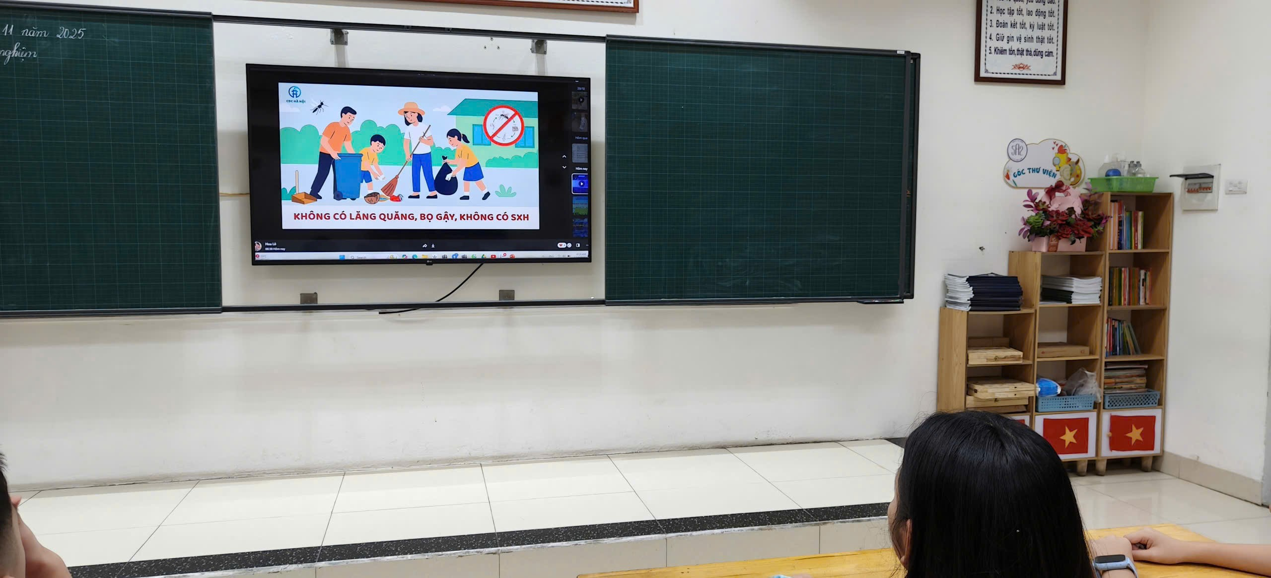 Các em học sinh tích cực tham gia, sôi nổi phát biểu ý kiến và cam kết cùng nhau giữ gìn môi trường học tập xanh – sạch – đẹp, không để muỗi sinh sôi. Một số lớp còn tổ chức các tiết mục tuyên truyền, vẽ tranh và đóng vai tuyên truyền viên nhỏ tuổi, góp phần lan tỏa thông điệp “Không có lăng quăng, bọ gậy – không có sốt xuất huyết”.