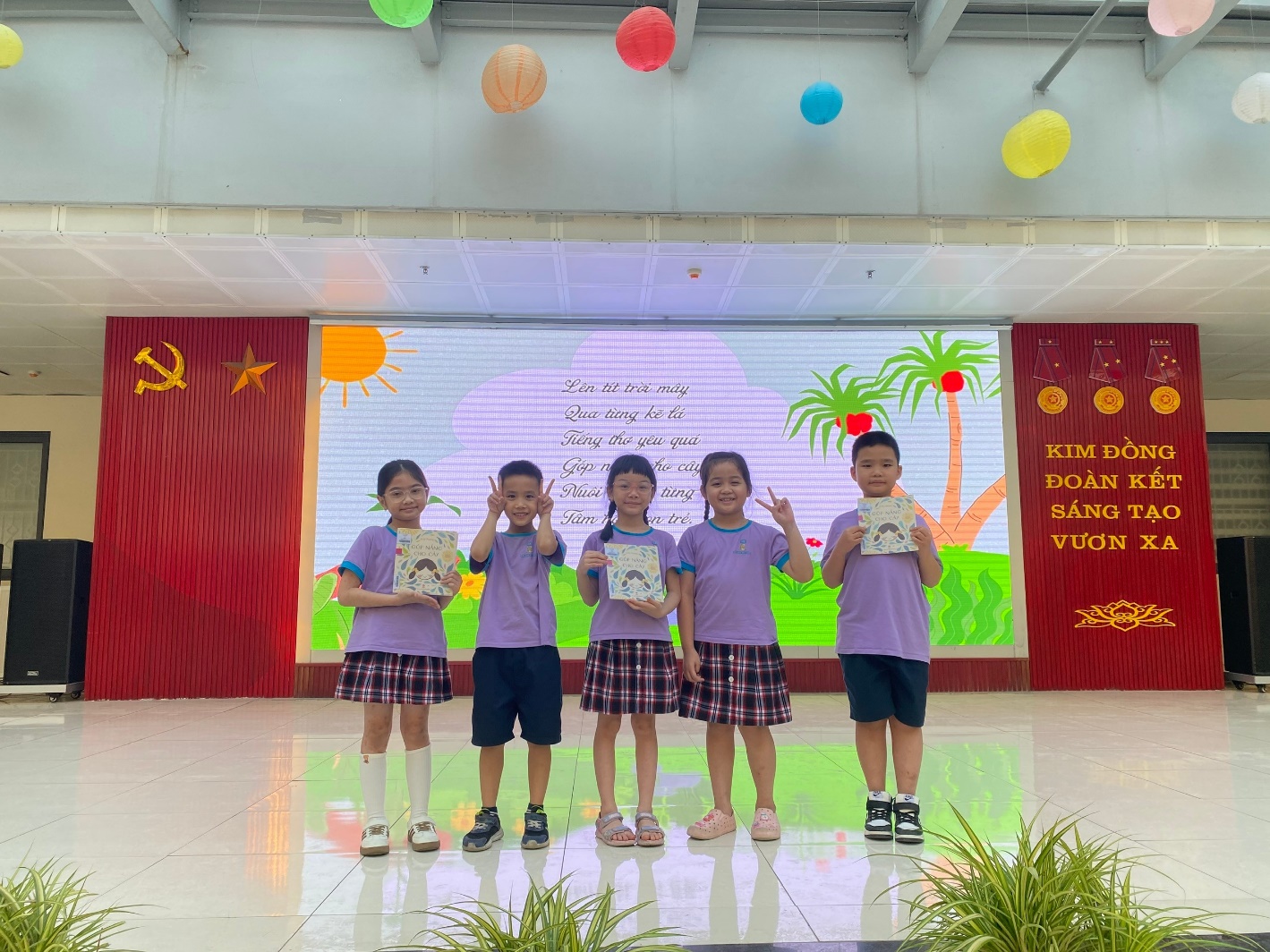 Một ngày trời trong veo của buổi sáng tháng 11, trên sân khấu của trường Tiểu học Kim Đồng vang lên những âm thanh trong trẻo lảnh lót của những bạn nhỏ lớp 2A3 đang đọc vè giới thiệu tới thây cô và các bạn học sinh tập thơ “góp nắng cho cây” của tác giả Ký Thương do Nhà xuất bản Kim Đồng ấn hành.